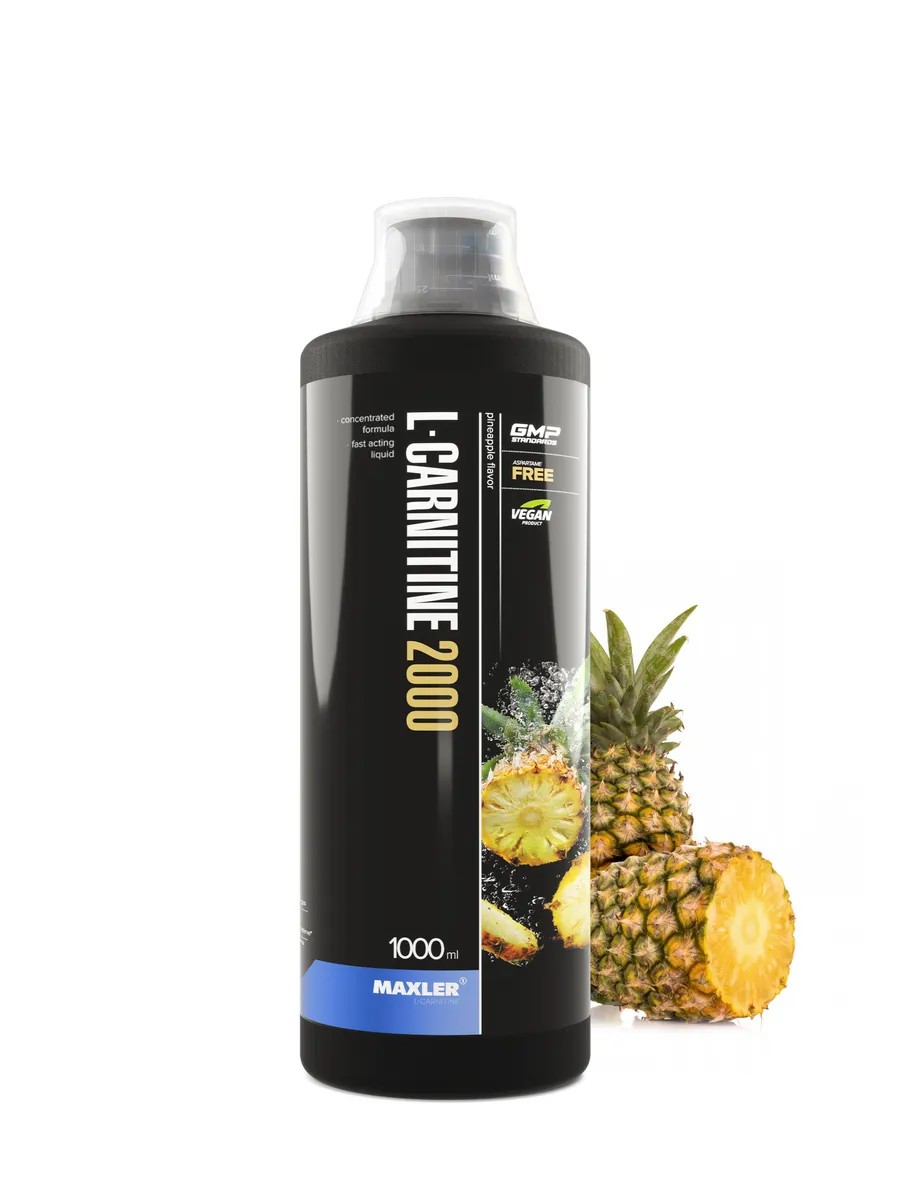 Maxler L-Carnitine Comfortable Shape 2000 1L Pineapple Flavored - Liquid L-Carnitine Concentrate. L-Carnitine is an amino acid synthesized in the human body, related to B vitamins. It helps the body produce energy from free fatty acids, reduces fatigue, quickly restores performance, improves metabolism, reduces excess weight and lowers blood cholesterol. L-Carnitine fat burner is effective when combined with intense sports training, such as aerobics and fitness. Directions for use: Take 20 ml (1 serving) pure or diluted with water. Do not take later than 6 p.m. to avoid difficulty falling asleep.