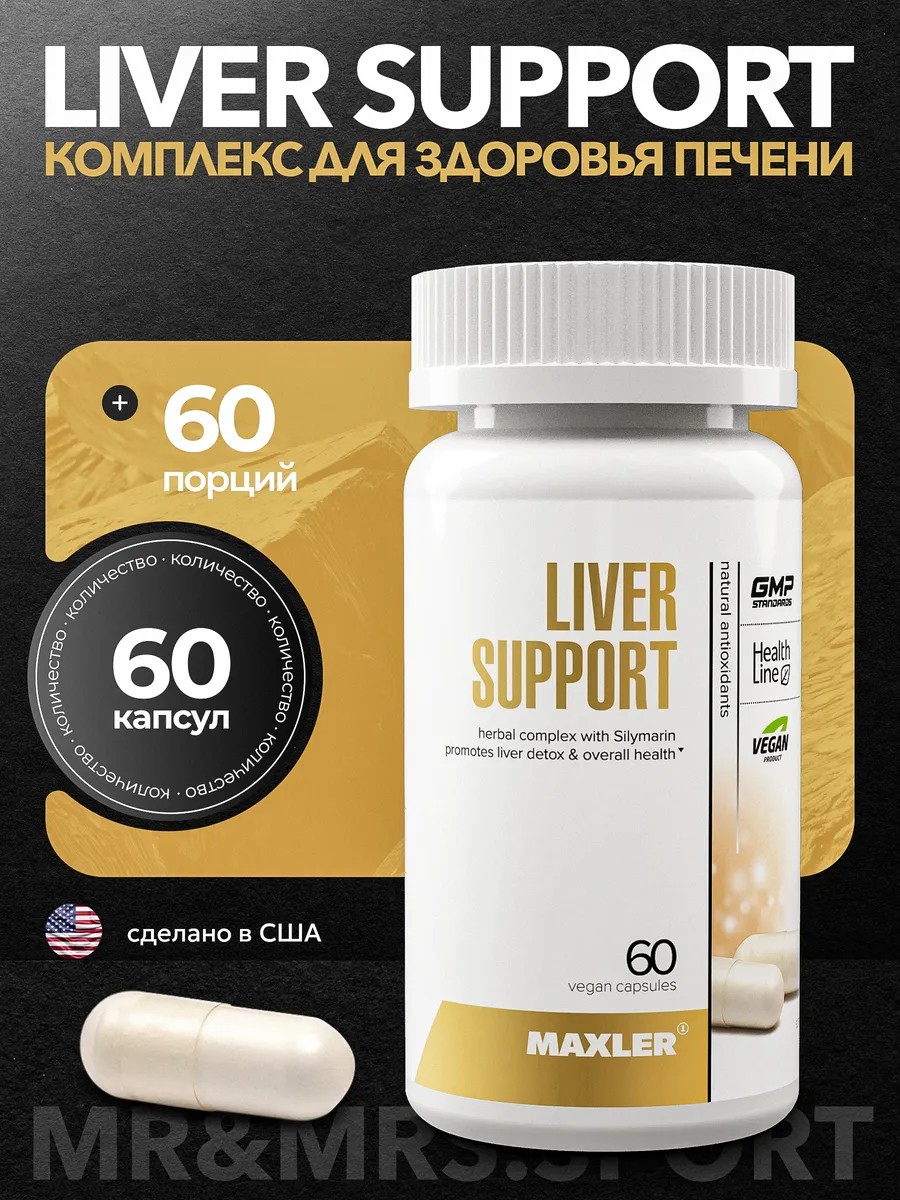 The natural antioxidant Maxler Liver Support provides optimal liver protection and health. The Maxler Liver Support complex from Maxler contains ingredients that complement and enhance each other's effects. This special range of herbal extracts protects liver cells from damage and toxins, and Maxler Liver Support also helps restore healthy liver cells. Directions for use: As a dietary supplement, take one serving (1 capsule) daily, preferably with meals. For best results, combine this amino acid complex with other Maxler products: Creatine (creatine) Maxler for strength and recovery, L citrulline (citrulline) for muscle recovery and nutrition, Glucosamine Chondroitin MSM (glucosamine chondroitin MSM) to protect joints during strength training, with amino acids Beta Alanine (Beta-Alanine), Glutamine (Glutamine), energy Black Kick for endurance and increasing training time, protein (whey protein) Golden Whey as a source of protein, isotonic Max Motion to replenish vitamins and minerals during training, electrolyte Electrolyte Powder to maintain water balance in the body, Hydrolyzed collagen Collagen Hydrolysate to protect joints and ligaments during training, fish oil Omega 3 (Omega 3 Gold) heart protection under heavy loads, a complex of vitamins for men with high sports load VitaMen, vitamins For women with high physical activity, VitaWomen, L-Carnitine fat burner for weight loss.