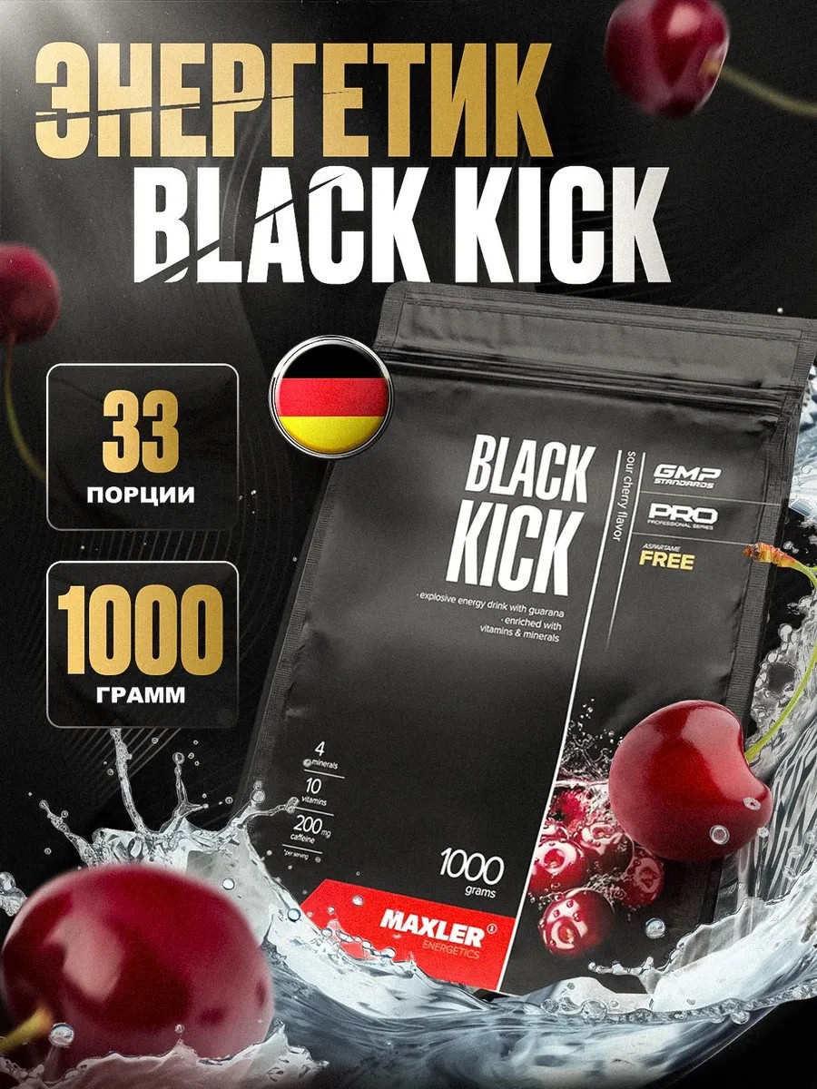 Black Kick – энергетический кофеино-гуарановый продукт на углеводной основе с витаминами и минералами. Стимулирующий эффект Black Kick обеспечивается высоким содержанием кофеина и гуараны. Экстракт гуараны – источник кофеина растительного происхождения. Сочетание чистого кофеина (быстрое воздействие на организм) с экстрактом гуараны (замедленное воздействие) обеспечивает интенсивное и длительное действие продукта. Прием Black Kick перед тренировкой и во время физических упражнений ускоряет кровообращение, стимулирует работоспособность, выносливость, помогает бороться с усталостью, улучшает концентрацию и обеспечивает готовность к запредельным нагрузкам. Продукт рекомендован для игровых, силовых видов спорта, занятий фитнесом, а также для людей, ведущих активный образ жизни.