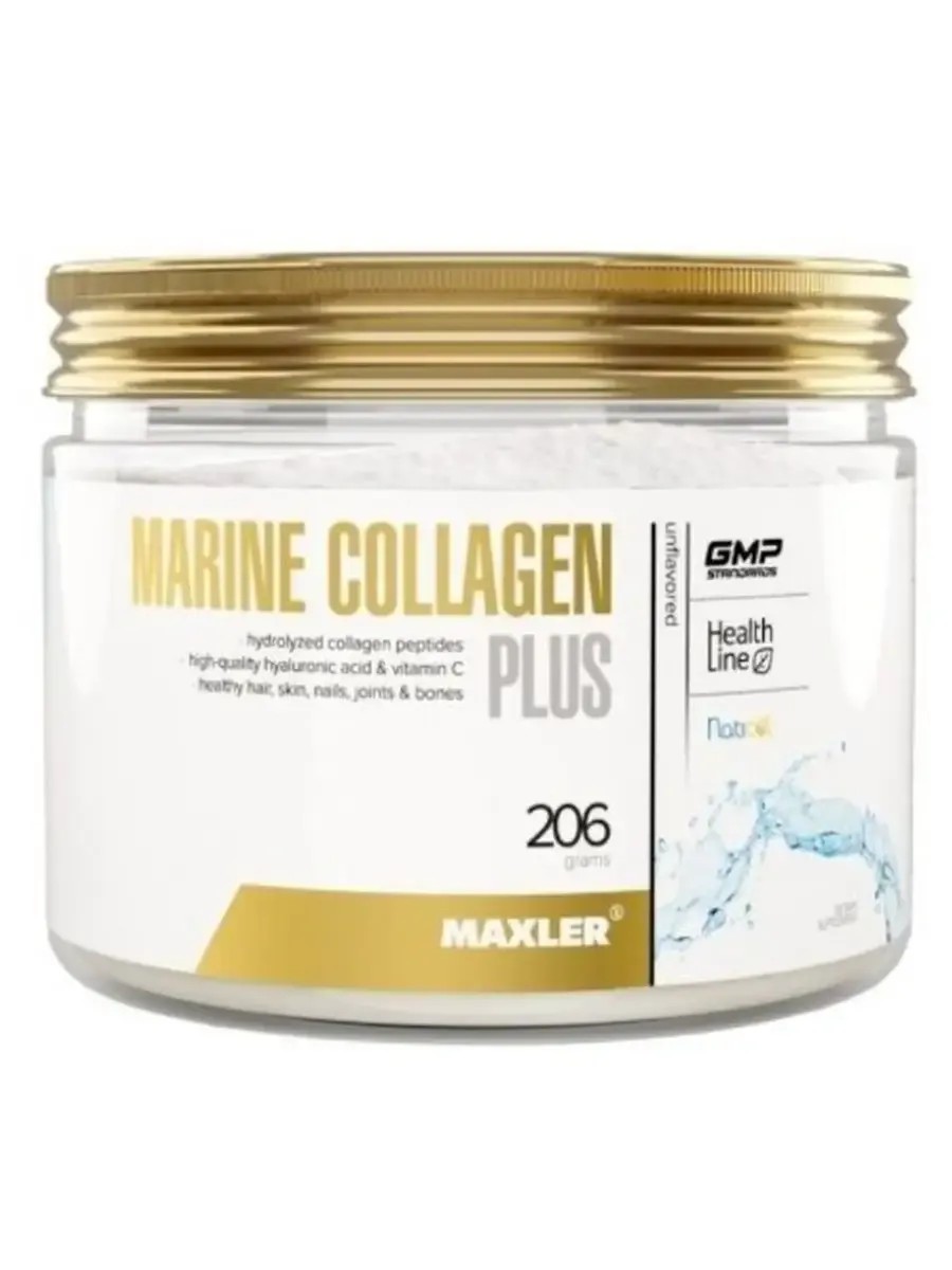Maxler Marine Collagen Plus is a product containing marine collagen peptides. Hydrolyzed marine collagen helps strengthen bones and joints, restore cartilage tissue, improve tissue regeneration after injuries and sprains, has a positive effect on the skin, hair, and nails, and accelerates the synthesis of the skin's own collagen. Marine Collagen Plus contains high-quality hyaluronic acid, which, in combination with marine collagen, helps improve skin condition and prevents premature wrinkles and aging. The simultaneous action of collagen and hyaluronic acid has a pronounced regenerating and rejuvenating effect on the skin. The product is enriched with vitamin C, which is also involved in the synthesis of the skin's own collagen. Thanks to hydrolyzed collagen peptides, Marine Collagen Plus is a highly bioavailable product. Directions for use: Mix 1 spoon (5.15 g) with 200-250 ml of water one hour before meals or 2 hours after meals.