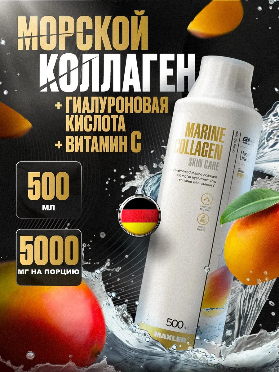 Maxler Marine Collagen SkinCare 500 мл со вкусом Клубники. Коллаген является одним из ключевых ингредиентов, который помогает организму оставаться молодым и красивым внутри и снаружи. Коллаген также является основным компонентом кожи и играет важную роль в укреплении кожи, а также может улучшить её водный баланс и эластичность. В ходе старения организма выработка коллагена снижается, что является причиной сухости кожи и появления морщин. Maxler Marine Collagen Skin Care содержит уникальное сочетание активных ингредиентов, а именно гидролизованный морской коллаген 1 типа , гиалуроновую кислоту и витамин С, которое помогает восстановить нормальный синтез коллагена и эластина. Макслер Marine Collagen Skin Care может улучшить водный баланс кожи и значительно уменьшить количество морщин. Рекомендации по применению: для поддержания эффекта, пейте 1 порцию (25 мл.), используя мерный колпачок, в чистом виде или разведенном с водой. Для улучшения эффекта принимайте 2 порции.