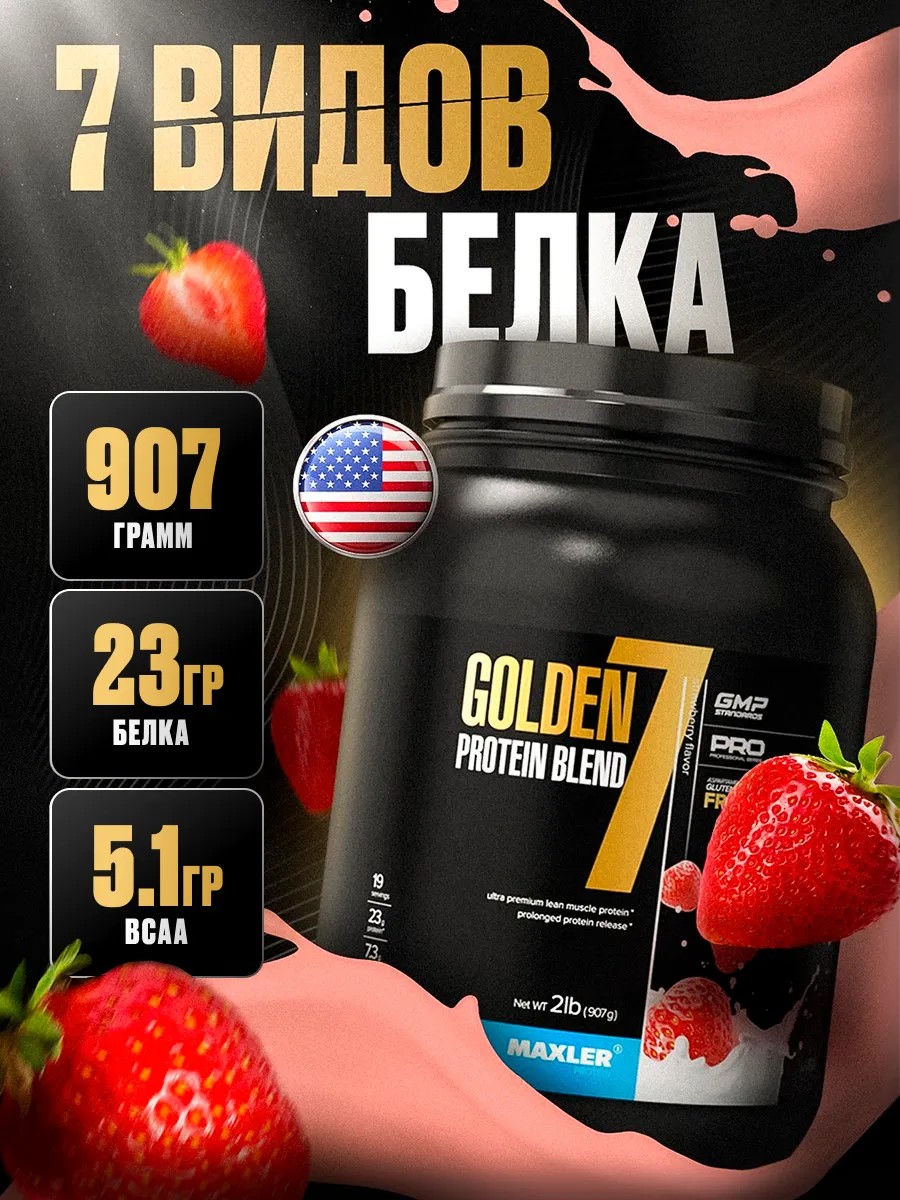 Макслер многокомпонентный протеин Golden 7 907г Клубника
