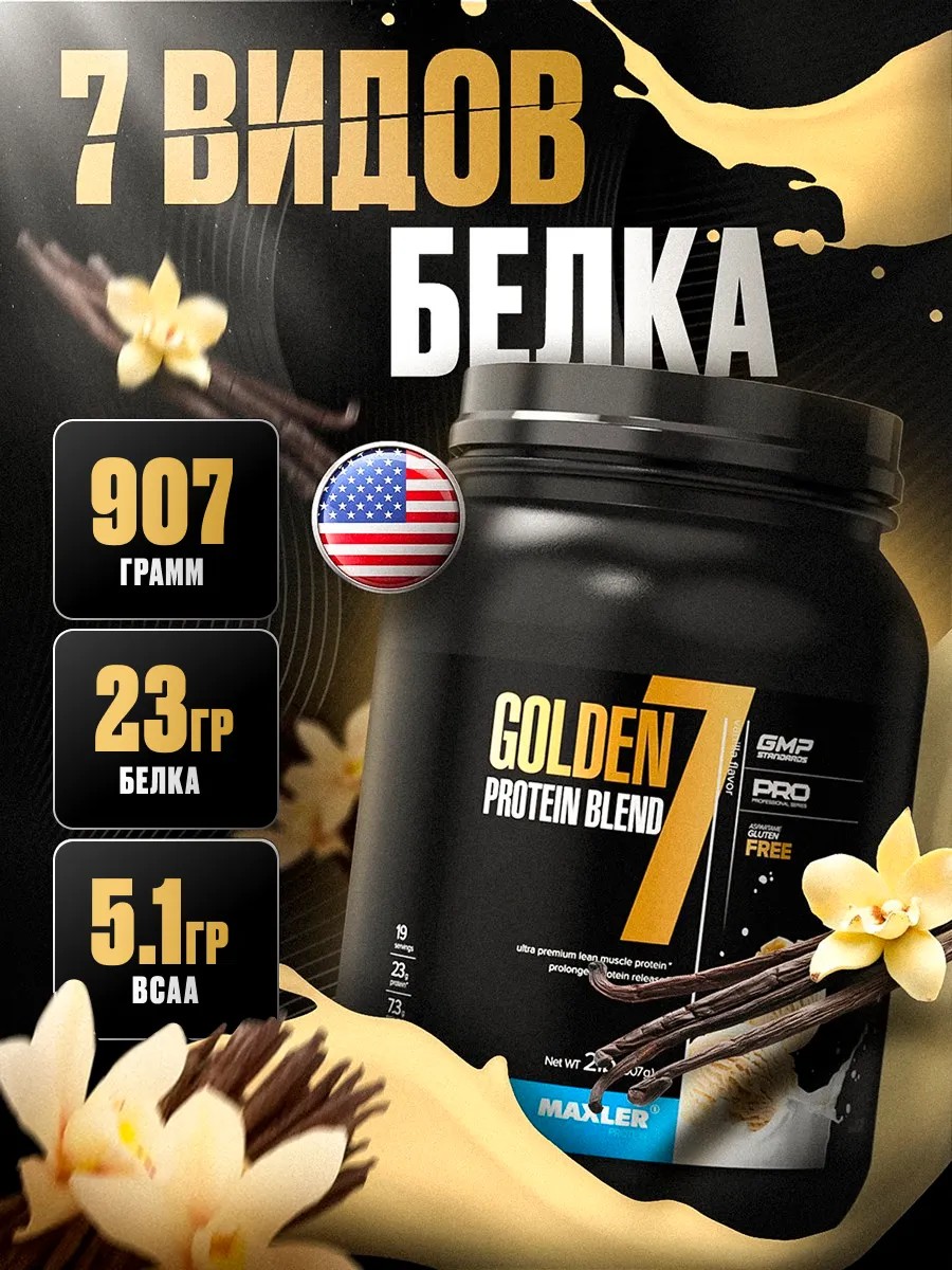 Макслер многокомпонентный протеин Golden 7 Blend 907г ваниль