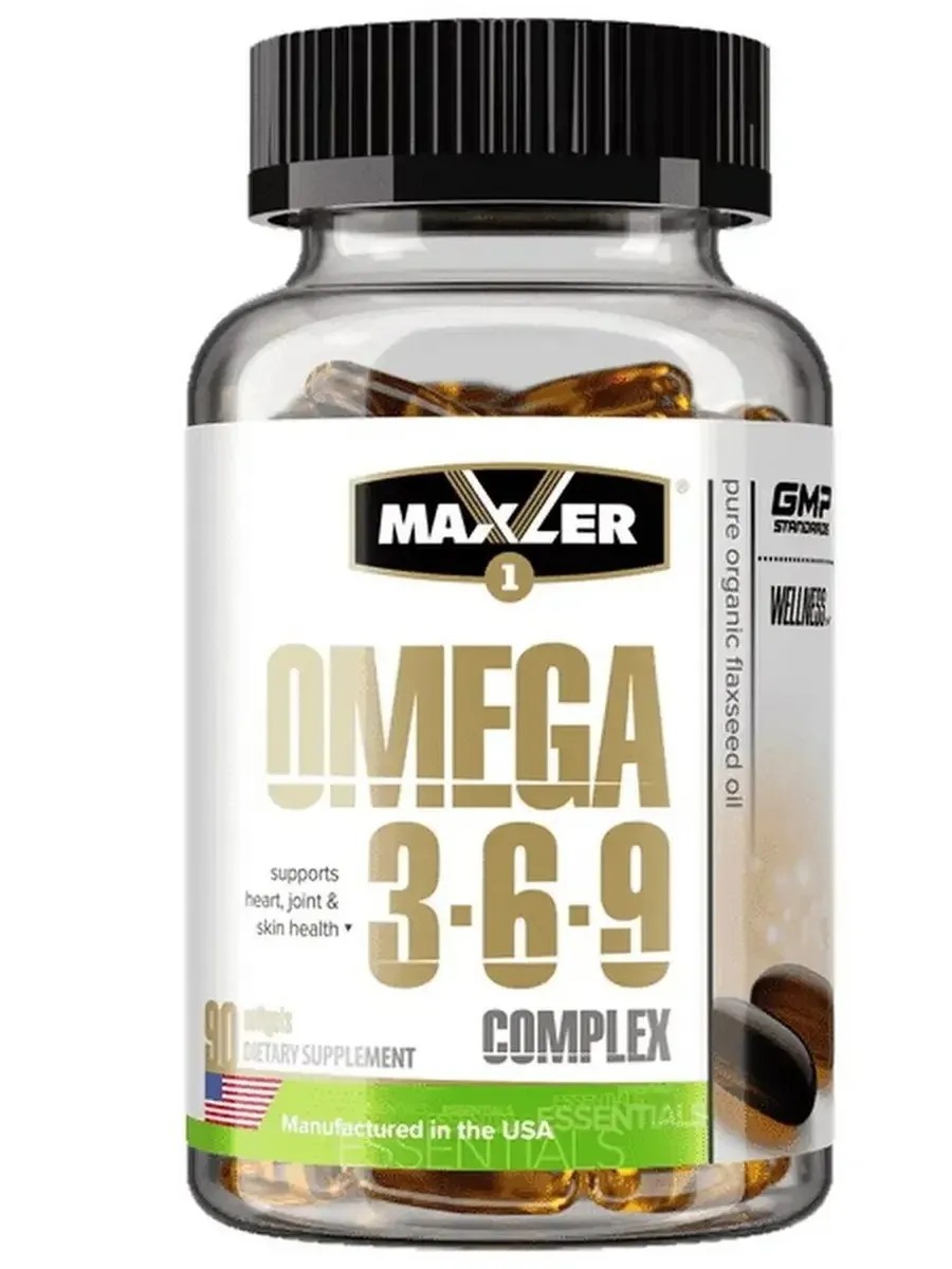 Omega 3-6-9 Complex от Maxler — это сбалансированная формула из трёх групп полиненасыщенных жирных кислот. В её состав входят омега-3 (EPA и DHA из рыбьего жира), омега-6 (линолевая кислота из масла огуречника) и омега-9 (олеиновая кислота из масла льна и оливкового масла). Такой комплекс поддерживает здоровье сердца и сосудов, улучшает работу мозга, укрепляет суставы и способствует поддержанию гормонального баланса.