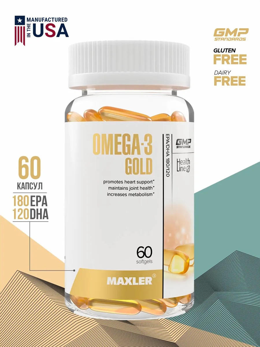 Maxler Omega-3 Gold рыбий жир, 60 капсул – пищевая добавка, созданная для нормализации обмена веществ и поддержания здоровья сосудов и суставов.