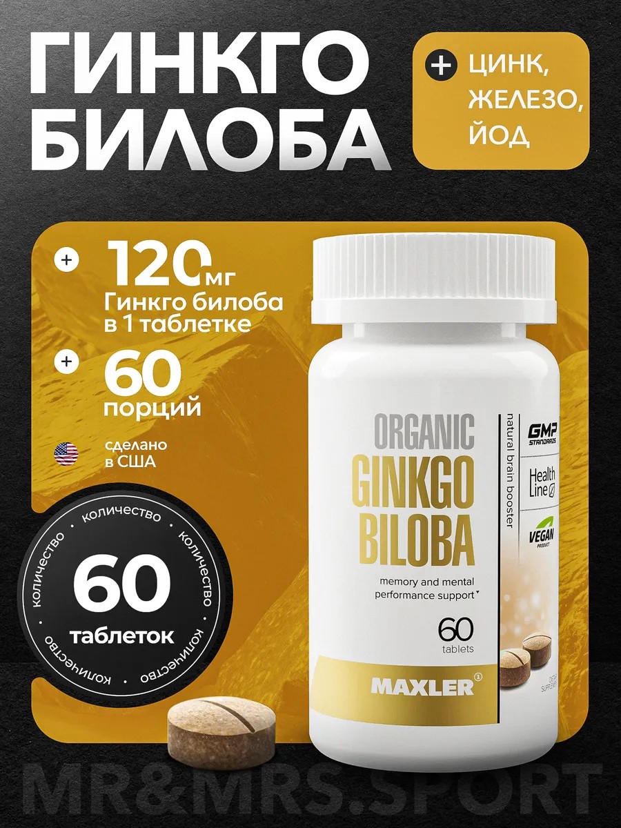 Maxler Organic Ginkgo Biloba / Maxler Organic Ginkgo Biloba with zinc, iron, and iodine improves mental performance, memory, and concentration, promotes good blood circulation in the brain, and helps normalize its function. In addition, the supplement maintains the strength and elasticity of blood vessels. Maxler Organic Ginkgo Biloba also contains powerful antioxidants that help fight the damaging effects of free radicals, maintaining youth, health, and energy. Maxler Organic Ginkgo Biloba is beneficial for anyone who cares about their health. Directions: As a dietary supplement, take one serving (1 tablet) daily, preferably with meals.