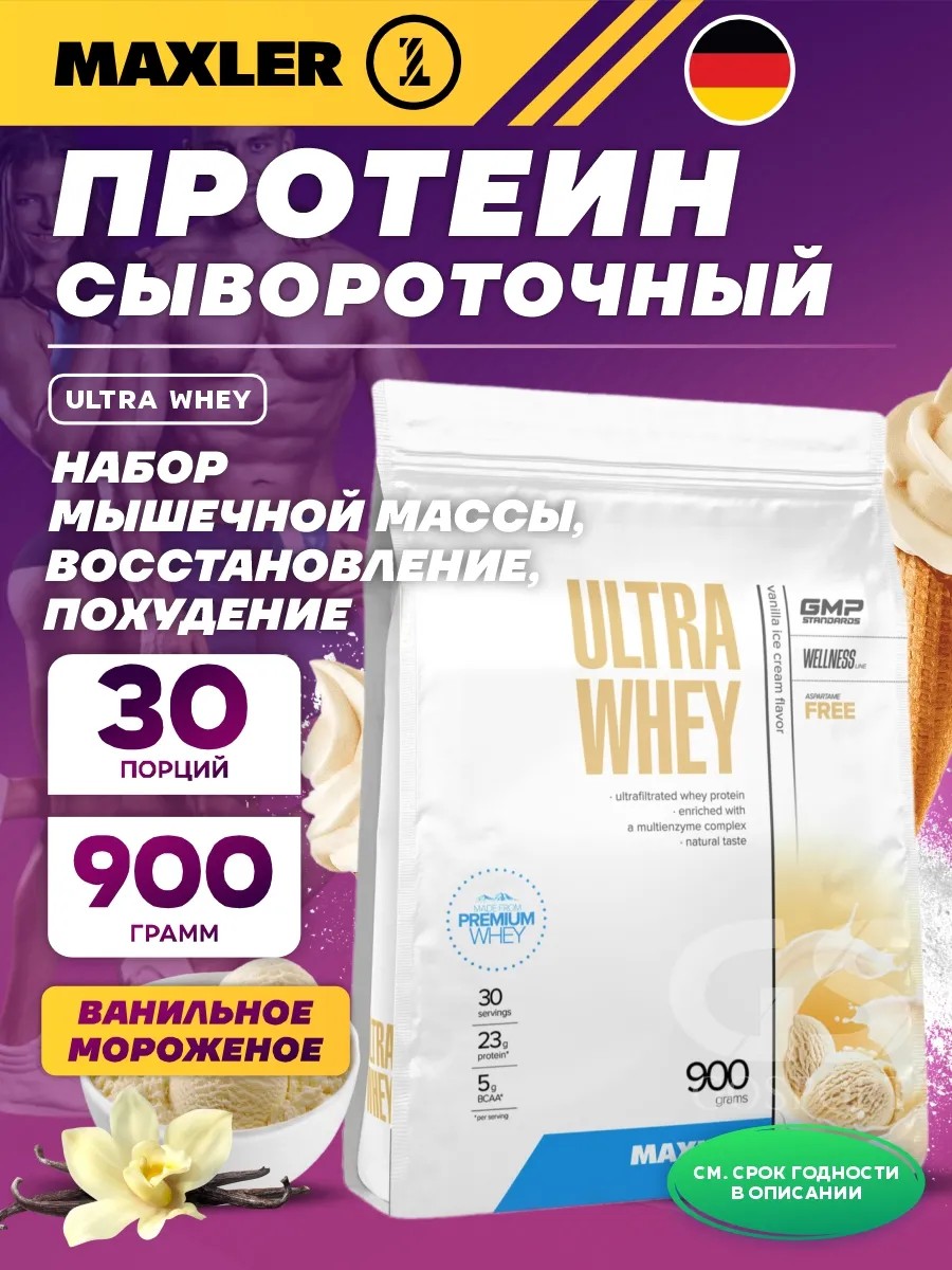 Годен до 14.02.2027. Сывороточный протеин Ultra Whey 900 г, Ванильное мороженное. Сывороточный протеин высочайшего качества Ultra Whey от Maxler, станет незаменимым помощником в достижении ваших спортивных целей. Протеин – это основной строительный материал для нашего организма. Он играет важнейшую роль в росте мышц и восстановлении организма после тренировок. Именно поэтому сывороточный протеин является неотъемлемым компонентом спортивного питания для профессиональных спортсменов и людей, занимающихся спортом. Сывороточный протеин – это идеальный протеиновый коктейль для набора мышечной массы и роста мышц. Сывороточный протеин от Макслер содержит все необходимые аминокислоты, которые способствуют быстрому восстановлению мышц и стимулируют их рост. Продукт подходит как мужчинам, так и женщинам, которые занимаются спортом и стремятся к достижению результатов. Сывороточный протеин является отличным дополнением к спортивному питанию для тех, кто хочет улучшить свою физическую форму, увеличить мышечную массу. Этот продукт также идеален для тех, кто хочет похудеть. Сывороточный протеин поможет вам контролировать аппетит благодаря высокому содержанию белка, который создает чувство сытости. Также он ускоряет обмен веществ, способствуя потере лишнего жира и сохранению сухой мышечной массы. Эта добавка восстанавливает организм после интенсивных тренировок, способствует росту мышц и повышает выносливость. сывороточный протеин - это не просто напиток, а инновационный продукт для достижения ваших спортивных целей. Рекомендации по применению: смешайте 1 порцию (30 г) с 250 мл воды или молока.