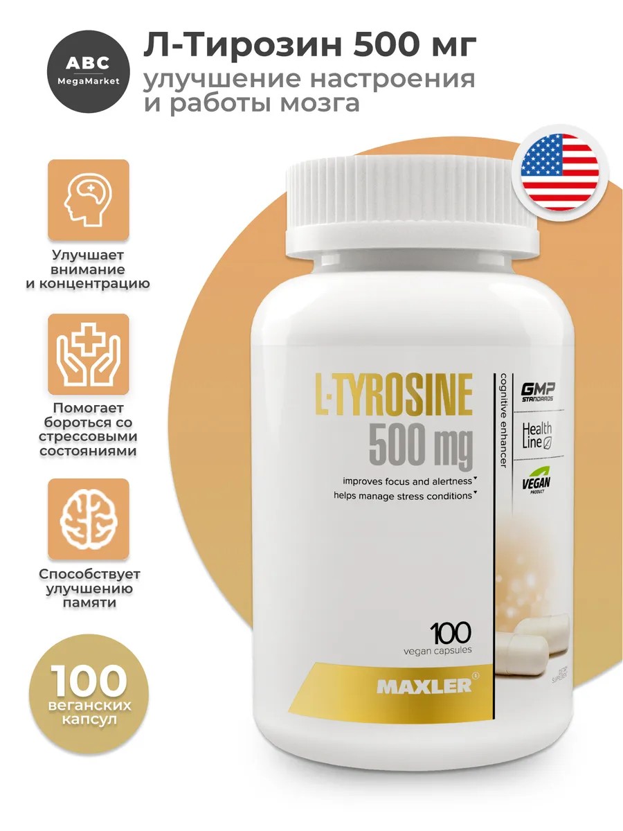 Tyrosine Maxler is a source of the amino acid l-tyrosine in capsules. Tyrosine is an amino acid that forms thyroid and adrenal hormones (T3, T4, and catecholamines). These hormones regulate the nervous system and brain function, the growth and development of new cells, and the body's ability to adapt to stress. A deficiency of tyrosine and phenylalanine (the amino acid from which tyrosine is formed in the body) can cause depression, increased susceptibility to stress, impaired cognitive function, logic, spatial and creative thinking, weakness, fatigue, and endocrine disorders. L-tyrosine powder is an effective sports nutrition supplement, a fat burner, and a detoxifier. Tyrosine is an important component of weight loss; it supports the health of the hormonal system and brain. Taking L-TYROSINE can enhance mental performance, maintain health, and provide additional multivitamins and vitamin complexes. Tyrosine 500 can be used as a sports nutrition supplement to improve concentration, reduce fatigue, and increase endurance. It can also be used as a detoxifier, vitamin, and dietary supplement to help cleanse the body and maintain health. If you're looking for a way to lose weight, L-tyrosine can be used in conjunction with other weight loss products, such as a fat burner, to enhance its effectiveness. This product is made in the USA. Vitamin C (or citrus juice) and vitamin B can help enhance the effects of tyrosine. If the goal is to enhance workout performance, take tyrosine 30-60 minutes before training. The dosage is individualized and is 1-3 capsules (500-1500 mg).