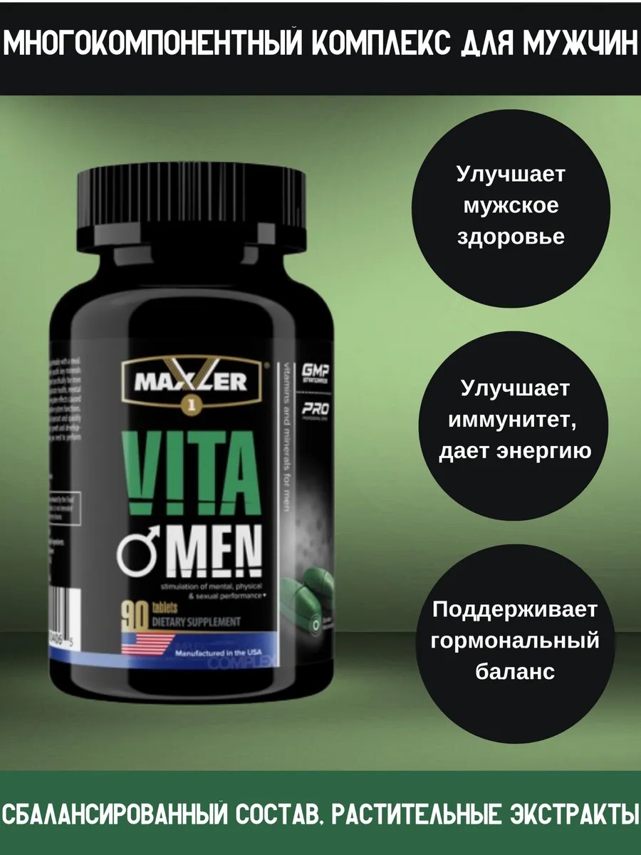 Maxler Vita Men – комплекс, матрица которого включает более 40 микроэлементов. Важная особенность препарата состоит в том, что он позволяет не только восполнить уже имеющийся пробел микроэлементов, но и предупредить возникновение множества сбоев в организме, связанных с недостатком витаминов. Добавка также снабжает организм необходимым для наращивания мышечного объема аминокислотным комплексом, что в последующем позволяет добиться максимального эффекта от тренировочного процесса. Преимущества употребления Maxler Vita Menулучшает выработку тестостерона;налаживает функционирование простаты;улучшает мозговую и умственную деятельность;нормализует работу пищеварительной системы;укрепляет связки;улучшает физическое состояние;повышает жизненный тонус;ускоряет процесс набора мышечной массы;усиливает ментальную и физическую выносливость;обогащает рацион необходимыми витаминами, микроэлементами и аминокислотами Рекомендации по применениюУпотреблять добавку следует каждый день по 3 таблетки, запивая комплекс достаточным объемом жидкости (250-300 мл). Принимать продукт необходимо с пищей. После окончания курса делается перерыв (4-6 недель). Затем Maxler Vita Men можно употреблять снова в указанной дозировке.
