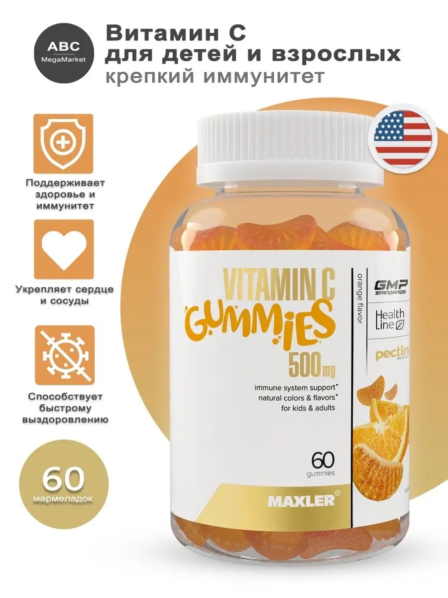 Витамины для детей Maxler Vitamin C 500 мг 60шт. Витамин С - один из самых известных витаминов для сохранения крепкого здоровья и молодости человеческого организма. БАД детский витамин С помогает быстро запустить иммунный ответ, борется с воспалением, снимает проявления и симптомы вирусных инфекциях. Регулярный прием аскорбиновой кислоты для детей повысит защитные силы организма, укрепит сердечно-сосудистую систему, улучшит всасывание питательных веществ и обеспечит нормальное протекания биохимических процессов. Аскорбиновая кислота (второе известное название витамина С) ускоряет регенерацию поврежденных клеток и препятствует воспалительным процессам, облегчит симптомы простудных заболеваний и ускорит выздоровление. Он также укрепляет кровеносные сосуды и эффективно выводит из организма лишний холестерин. Участвуя в синтезе коллагена, витамин С обеспечивает прочность костей и связок и эластичность кожи, препятствует появлению растяжек в период быстрого роста. Вам больше не надо гоняться за ребёнком с требованием принять таблетку, жевательный мармелад дети просят сами. Рекомендации по применению взрослым и детям старше 4 лет принимать 2-4 жевательные пастилки один раз в день. Принимайте в любое время в течение дня. В линейке жевательных пастилок от Макслер есть детский витамин Д3 с К2. Мультивитаминный комплекс. Омега для детей. Кальций Д3 для детей. Витамин С жевательный, детские витамины.