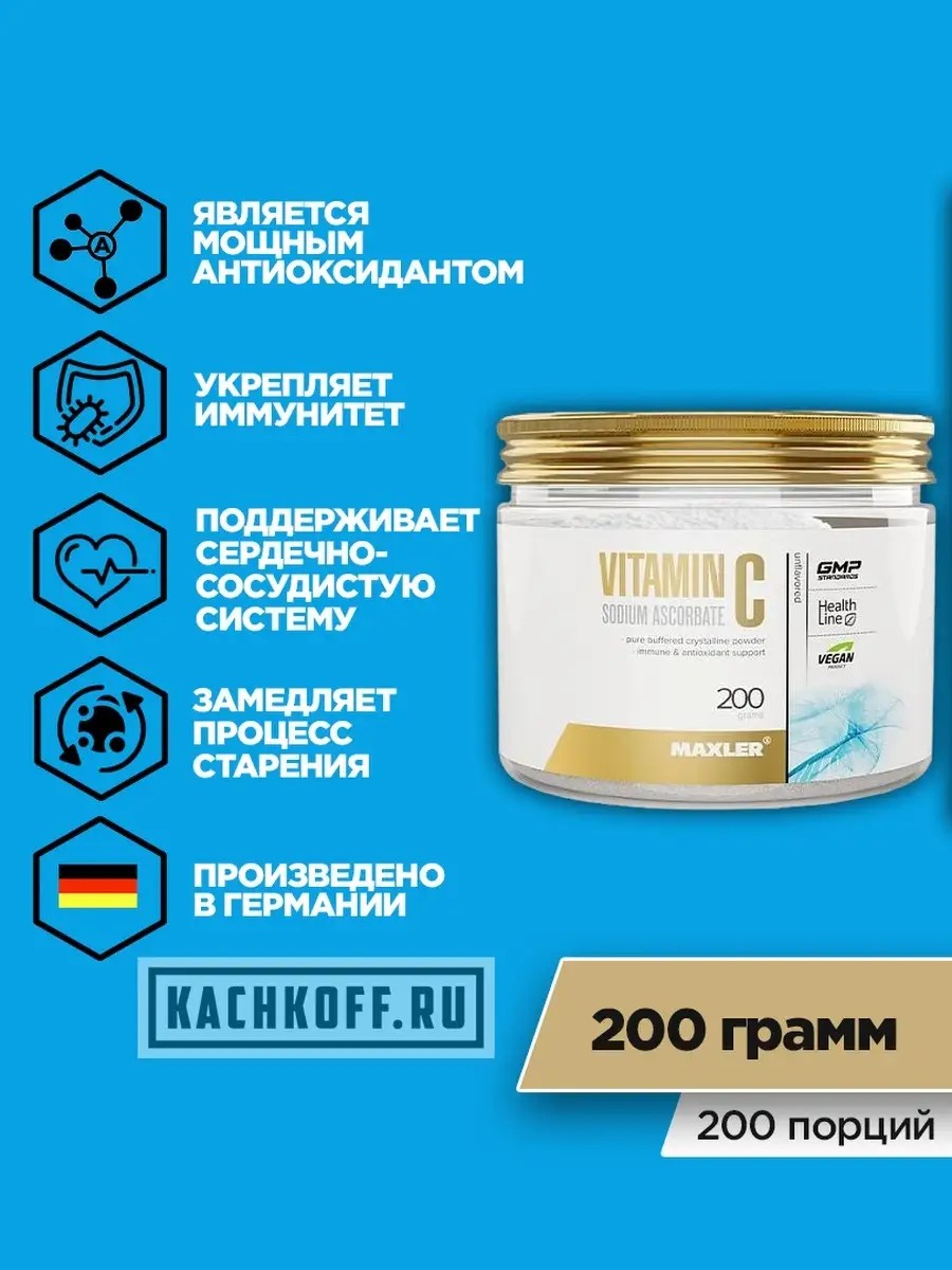 Vitamin C наш организм не может вырабатывать, поэтому необходимо подпитывать его извне.Он замедляет старение, так как помогает вырабатывать коллаген. Продукт от Maxler витамин с кроме того, что укрепляет иммунитет, улучшает усвоение железа, помогает контролировать давление, защищает сердечно-сосудистую систему.