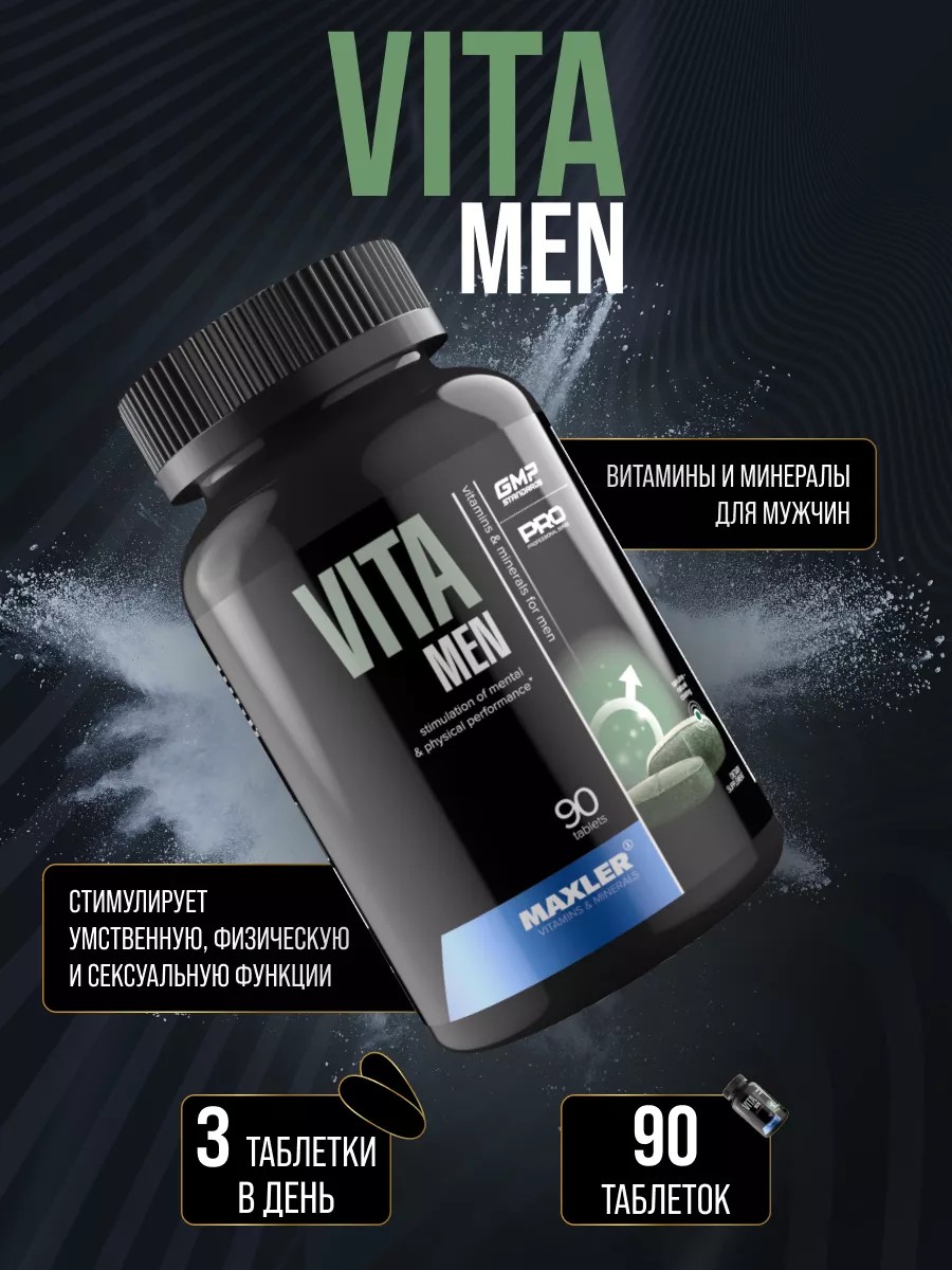 Порций в Упаковке: 60. Созданный специально для мужчин витаминно-минеральный комплекс, состоящий из ключевых минералов и экзотических фитодобавок Maxler Vita Men / Макслер Вита Мен способствует улучшению умственной и физической активности, здоровью простаты, снижает негативные последствия стресса и нормализует функцию пищеварительной системы. Спортивные витамины для мужчин Maxler VitaMen снабжают ваш организм важными и быстроусваиваемыми аминокислотами, которые способствуют росту мышц и их восстановлению. Данный продукт содержит высокие спортивные дозировки витаминов. Рекомендуем принимать в утренний прием пищи за 10 часов до сна. Курс приема VitaMen: При высоких физических нагрузках и дефиците витаминов 4-6 недель 3 таблетки.При средних физических нагрузках и дефиците витаминов 4-6 недель 2 таблетки.Если вы принимаете продукт в профилактических целях, 2 недели не более 1 таблетки VitaMen в день,Рекомендуем принимать курсами 2-3 раза в год. Перед приемом продукта рекомендуем проконсультироваться с лечащим терапевтом