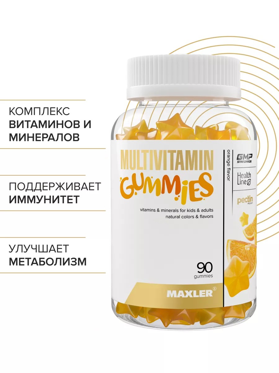 Витамины для детей Maxler Multivitamin Gummies 90 шт со вкусом Апельсин. Когда вы хотите поддержать свой организм, но не хотите, чтобы это было заботой, Multivitamin Gummies могут стать вашим секретным оружием. Они содержат все полезные витамины, а также йод и цинк. Они помогают не только заботиться о вашем здоровье, но также поддерживают иммунитет, пищеварение, здоровье костей и кожи.Эти жевательные пластинки обладают множеством антиоксидантных витаминов, таких как витамин С, А и Е. Они защищают ваши клетки от свободных радикалов, поддерживают зрение и иммунитет. Комбинация витамина С и цинка поможет вам бороться с инфекциями.Витамины группы В отлично влияют на ваш метаболизм. Они помогают переваривать пищу и высвобождать энергию из углеводов, жиров и белков. Йод также помогает в этом аспекте. Кроме того, они поддерживают нервную систему и помогают образованию красных кровяных клеток. Добавленный холин в жевательных пластинках также повышает концентрацию и память.Также, там много витамина D для ваших костей, мышц, зубов и, конечно же, вашей иммунной системы.Maxler Multivitamin Gummies Orange – это отличный выбор для поддержания общего здоровья, так как они содержат все ключевые витамины и два важных минерала. Вы найдете в них увлекательный способ заботиться о себе – их апельсиновый вкус и забавная форма превращают полезные привычки в настоящее удовольствие. Это действительно отличный вариант для всей семьи.