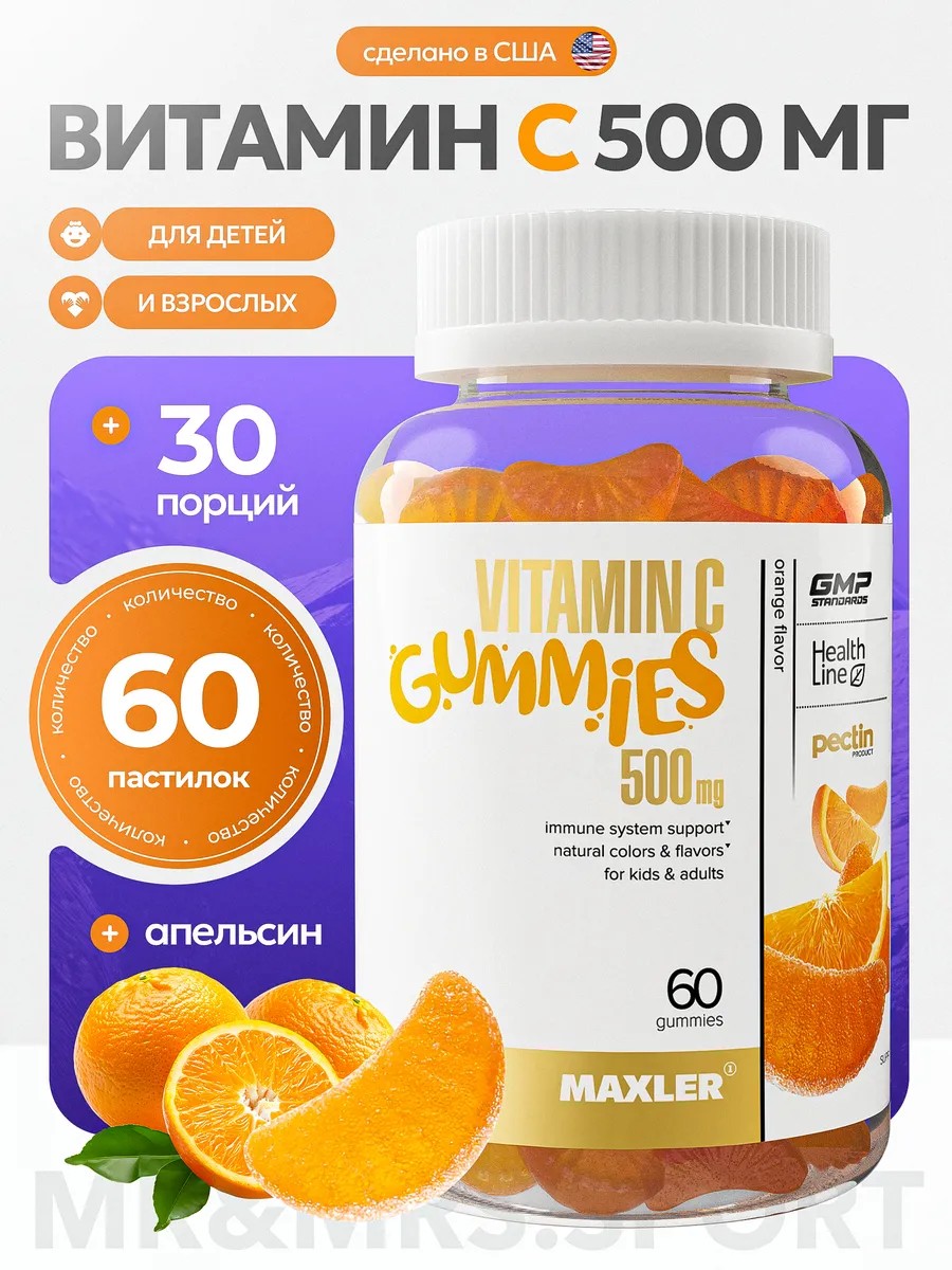Vitamins for children Maxler Vitamin C 500 mg 60 pcs. Vitamin C is an essential nutrient for maintaining good health and youth of the human body. It helps to quickly launch the immune response. Thanks to its anti-inflammatory properties, vitamin C fights inflammation, which is one of the key factors causing symptoms of viral infections. It can also protect you from colds or reduce the duration of cold symptoms. Benefits of Vitamin C Gummies It is important to provide the body with a sufficient level of vitamin C, as it: ● increases the body's natural defenses; ● maintains the health of the cardiovascular system; ● strengthens bones; ● maintains healthy skin. Vitamin C accelerates the regeneration of damaged cells and prevents inflammatory processes. Vitamin C has proven its effectiveness not only in the prevention but also in relieving the symptoms of common colds. It relieves discomfort caused by headaches, fatigue, muscle aches, fever and speeds up recovery. This makes vitamin C an invaluable ally for your immune system throughout cold and flu season. Vitamin C helps regulate circulation. It also strengthens blood vessels and effectively removes excess cholesterol from the body, thereby providing comprehensive support for the cardiovascular and circulatory systems. By participating in collagen synthesis, vitamin C ensures strong bones and ligaments and elastic skin. Vitamin C Gummies are an ideal supplement for children and adults with an active lifestyle. Directions: Adults and children over 4 years of age take 2-4 gummies once daily. Take anytime during the day. Serving size should be based on your overall diet and additional vitamin needs.