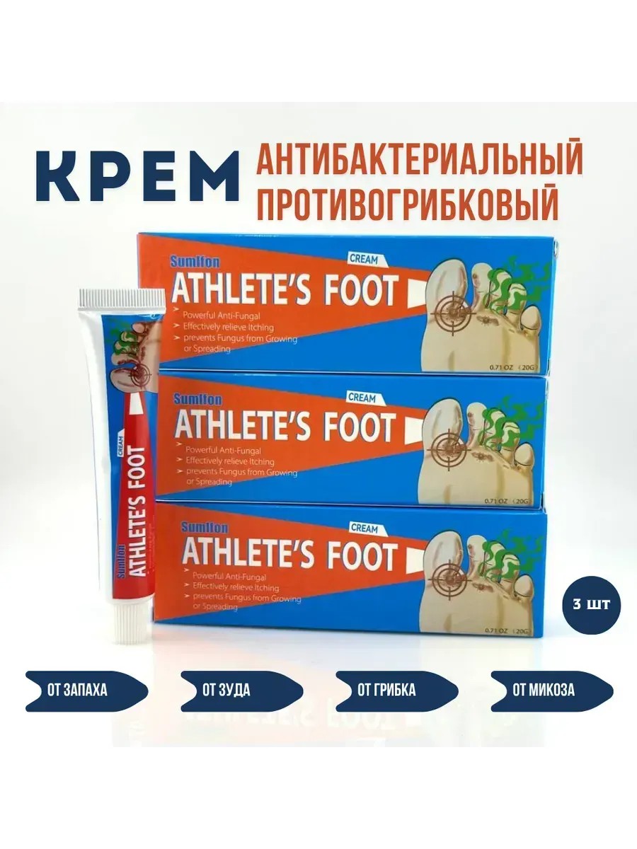 Эффективный антибактериальный крем для ухода за кожей стоп. Помогает при грибковых поражениях кожи (микозах), потливости ног, неприятном запахе и зуде. Оказывает противовоспалительное и антисептическое действие. Подходит для профилактики и устранения дискомфорта после посещения бассейна, спортзала или общественного душа.
