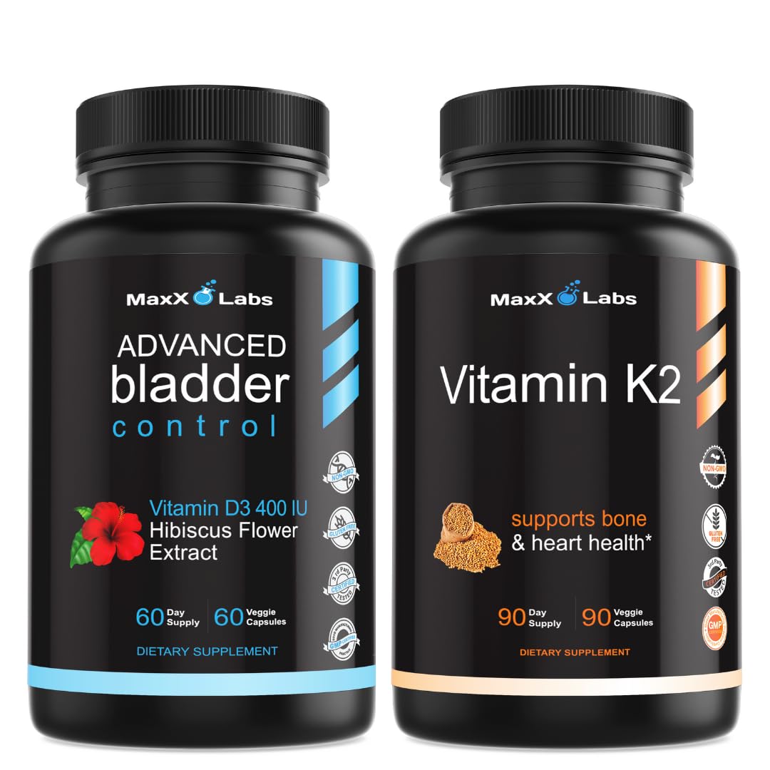 MaxX Labs Advanced Bladder Control Supplement for Women & Men 60 Caps + Vitamin K2 Supplement - Full Spectrum Vitamin K2 MK7 MK4 & Calcium - 90 Capsules