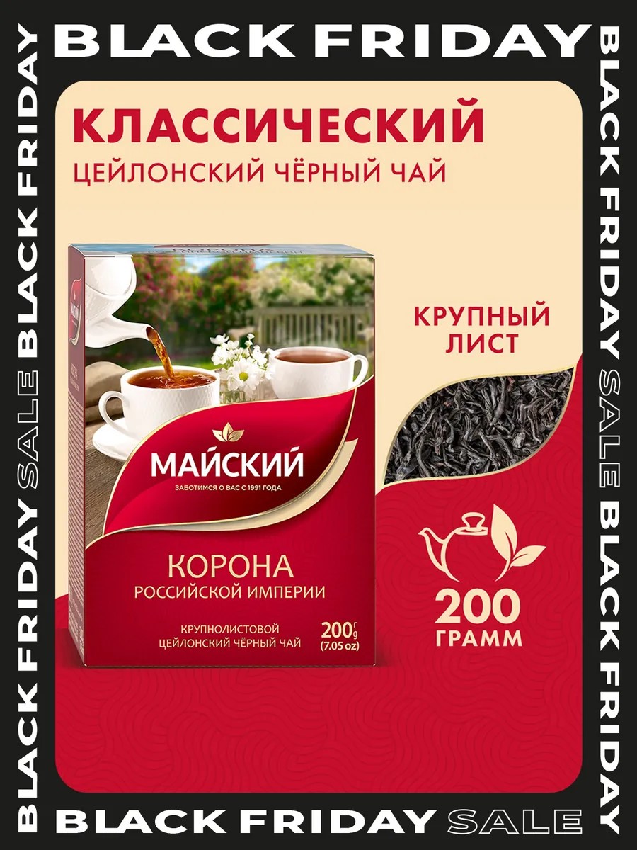 Черный чай - это напиток, который давно стал неотъемлемой частью русского чаепития, его любят за насыщенный вкус и аромат. Крупнолистовой чай "Майский" воспроизводит величественные традиции истории российского чаепития с черным листовым чаем "Корона Российской Империи", который заслуженно считается золотым стандартом качества.Этот высокогорный чай идеально сочетает в себе терпкость и полноту вкуса, именно в крупном листе цейлонского чая раскрывается все богатство вкуса и аромата классического натурального чая, без каких-либо добавок. Бережный процесс скрутки специально отобранных листьев подчеркивает его уникальность и создает особый баланс между вкусом и ароматом.В чашке этого чая сливаются воедино золотисто-красноватые оттенки и соблазнительный аромат с фруктовыми нотами. Отборные листья весеннего сбора придают ему свежий аромат и мягкий, классический вкус, так знакомый и любимый российским потребителям. Чай "Майский" обещает превратить ваше чаепитие в истинное наслаждение и приятное времяпрепровождение в кругу близких и друзей.Вкус и аромат крупнолистового чая "Корона Российской Империи", упакованного в практичную коробку весом 200 г, сделают его превосходным подарком на День рождения или любой другой праздник. Подарите своим близким возможность насладиться классическими нотками этого уникального оригинального чая и перенестись в атмосферу старинной российской традиции.
