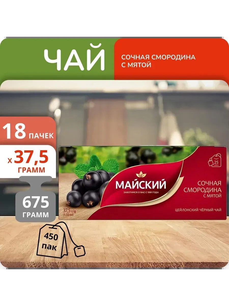 майский Упаковка 18 пачек Чай черный Смородина мята (1.5г х 25)