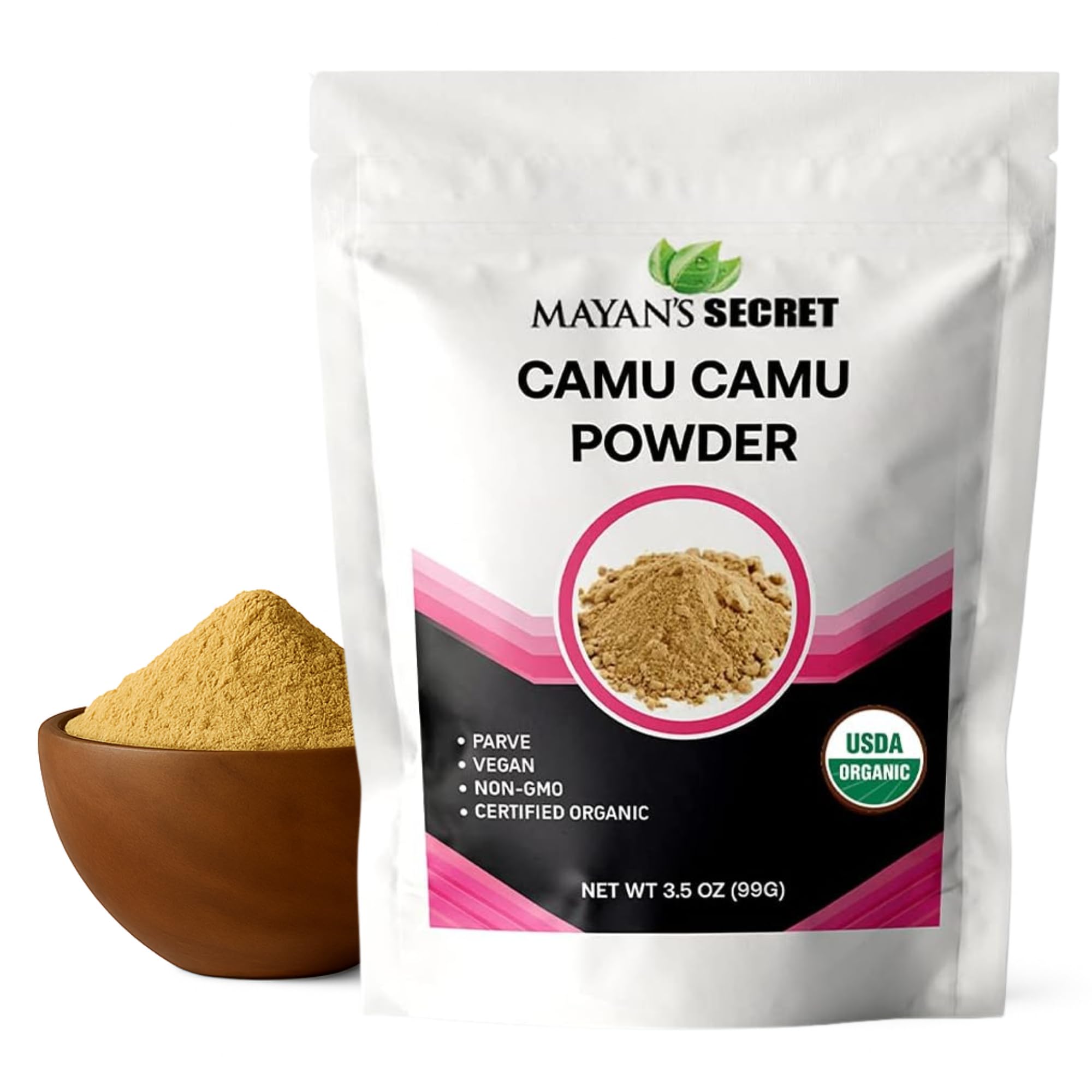 Mayan's Secret - Organic Camu Camu Powder USDA Certified Vegan Non-GMO High Vitamin C Superfood for Immune Support Natural Antioxidant Boost 3.5 oz (99g) 3.5 Ounce (Pack of 1)