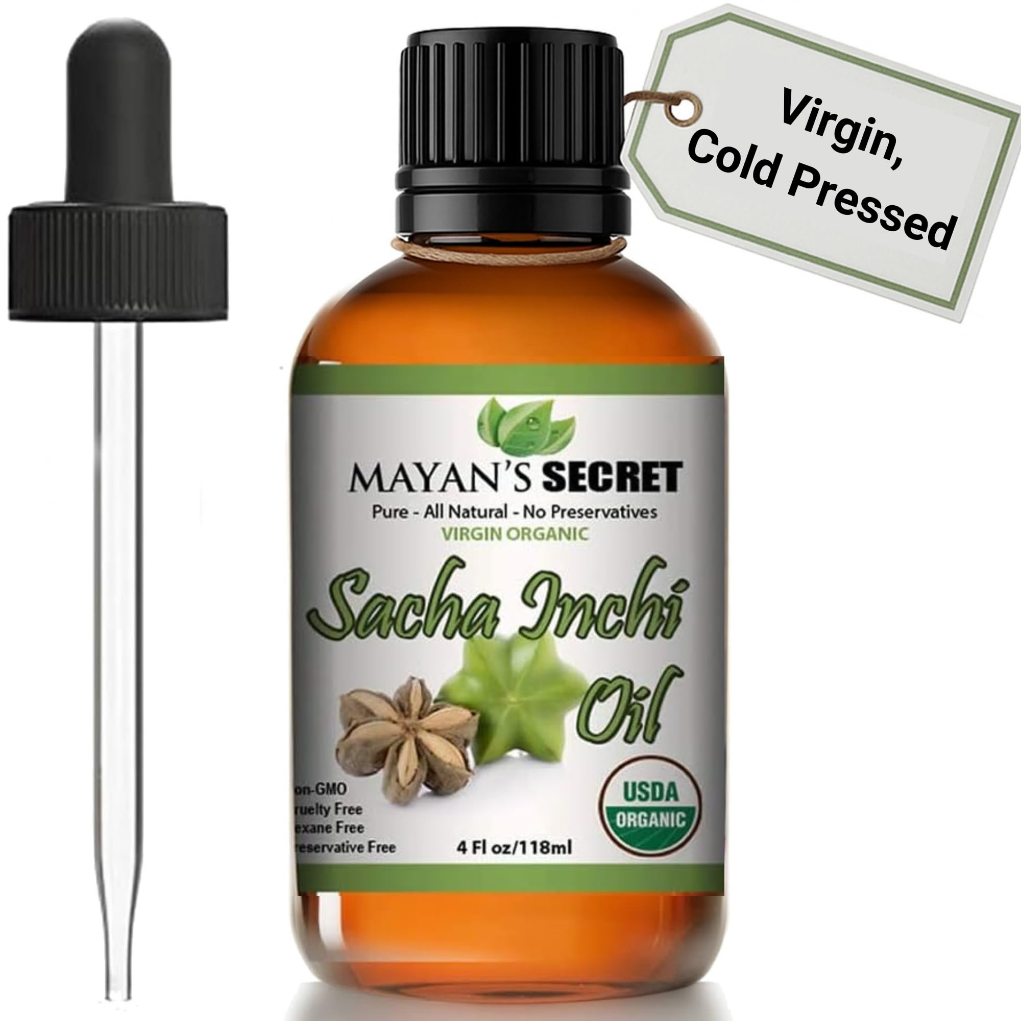 MONEY BACK GUARANTEE - 4-ounce dark amber glass bottle glass stopper extends the shelf life as oils are light sensitive and must be stored in dark amber bottles to protect them from oxidation. (Pure natural oils that are not packaged in dark bottles will lose potency and become ineffective.) Mayan's Secret stands behind their 100 Satisfaction Guarantee - love it or get your money back!. Sacha Inchi oil contains 93 unsaturated fatty acids. Compare this to the second and third highest plant sources of unsaturated fatty acids evening primrose oil (86 ) and flaxseed oil (78 ). The majority of the fatty acids in Sacha Inchi oil are omega 3 (alpha-linolenic acid) and omega-6 (linoleic) fatty acids. Sacha Inchi oil consists of Omega 3 (48 ), Omega 6 (35 ), Omega 9 (9 ), proteins (33 ) ). It is also abundant in iodine and vitamin A and E. There are so many wonderful oils for the skin, with each of them having a unique property that makes them stand out. Sacha Inchi oil is no exception, with its exceptionally high omega-3 fatty acid content, it is a special oil with outstanding benefits for the skin. GUARANTEED HIGHEST QUALITY, MOST POTENT USDA CERTIFIED ORGANIC SACHA INCHI OIL -What sets our Essential Oils apart is our unparalleled purity and concentration. One ingredient only -Organic Sacha Inchi Oil Natural, with no adulterants or dilution, Mayan's Secret oils provide the maximum benefit possible and are uncompromising.