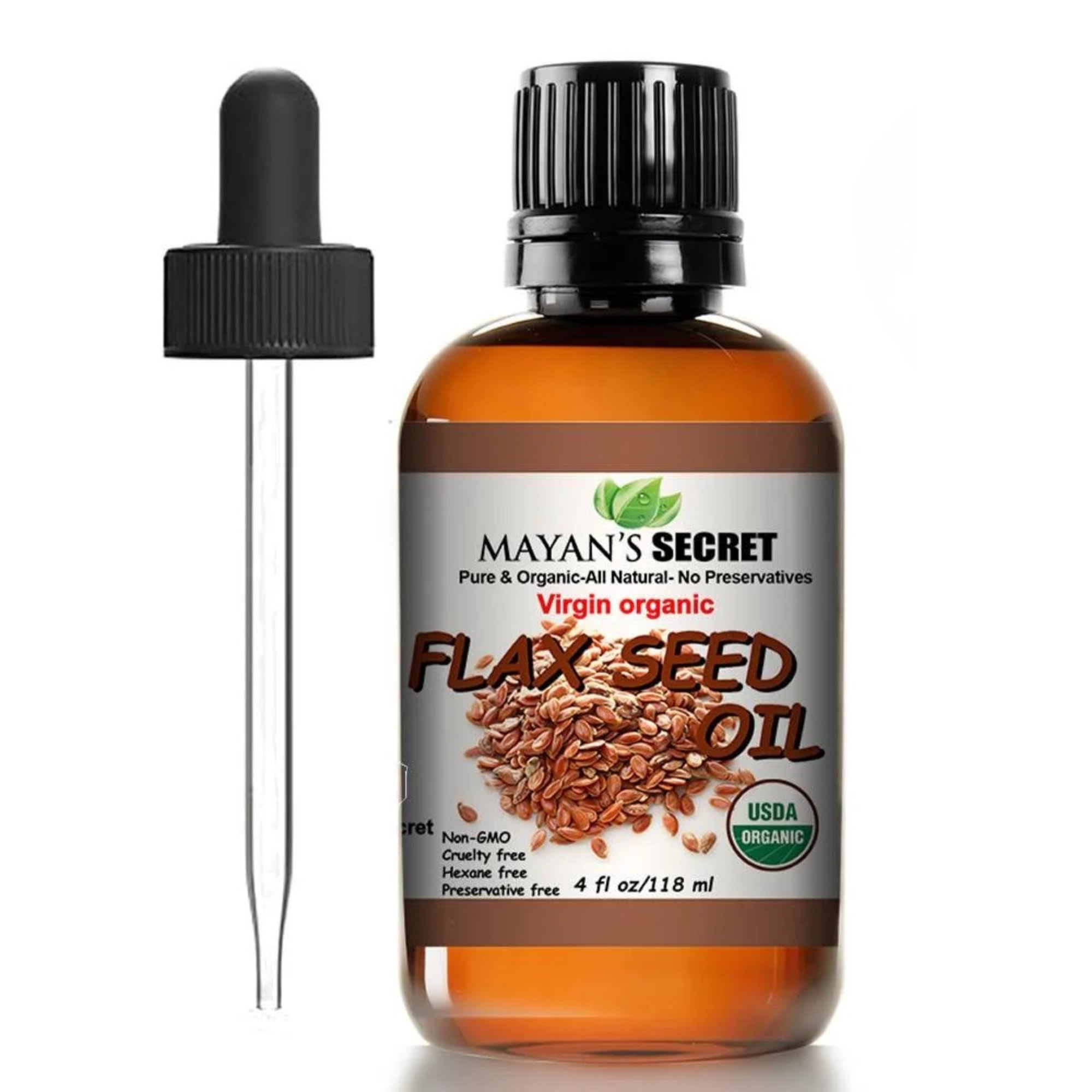 Mayan's Secret USDA Certified Virgin Organic Flax Seed Oil Unrefined Virgin Cold Pressed Linum Usitatissimum 4 OZ - For Skin