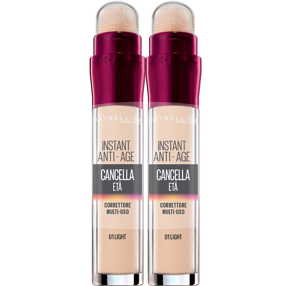 Multifunctional liquid concealer to cover dark circles, correct imperfections, sculpt and brighten the complexion, also suitable for concealing fine lines - Result: targeted correction, buildable coverage, natural finish and long-lasting wear, dark circles and signs of fatigue erased instantly - Apply the product around the eyes on dark circles and fine lines. On first use, rotate the applicator neck 8 times until the formula no longer appears on the sponge - Formula enriched with goji berries and haloxyl to slow down skin aging, applicator with sponge covered in thousands of microfibers to cover any imperfection - Contents: 2 x Maybelline New York Age Eraser Concealer, Shade: 01 Light, Quantity: 6.8 ml INGREDIENTS G 852364 1 - Ingredients: Aqua Water, CYCLOPENTASILOXANE, DIMETHICONE, ISODODECANE, GLYCERIN, PEG-9 POLYDIMETHYLSILOXYETHYL DIMETHICONE, BUTYLENE GLYCOL, DIMETHICON CROSSPOLYMER, NYLON-12, DISTEARDIM. ONIUM HECTORITE, CYCLOHEXASILOXANE, PEG-10 DIMETHICON, CETYL PEG PPG-10 1 DIMETHICON, PHENOXYETHANOL, SODIUM CHLORIDE POLYGLYCERYL-4 ISOSTEARATE, CAPRYLYL GLYCOL, DISODIUM STEAROYL GLUTAMATE, ETHYTHAMATE, ETHYTHAMATE, ETHYTHANE, ETHYTHANE, ETHYTHANE, ETHYTHANE, LHEXYLGLGLL YCERIN, METHYLPARABEN, LYCIUM BARBARBARUM FRUIT EXTRACT, CHLORPHENESIN, ETHYLPARABEN, ALUMINUM HYDROXIDE, PEG-9, N-HYDROXYSUCCINIMIDE, PALMIITOYL OLIGOPEPTIDE, CHRYSIN, PALMITOYL TETRAPEPTIDE-7, [ - MAY Content: 77891 Titanium DIOXIDE, CI 77491, CI 77492, CI 77499 IRON OXIDES]. (F.I.L. D44980 3)Contents: 2 x Maybelline New York Multi-Use Concealer, hydrating and buildable coverage, covers imperfections and dark circles, with goji berry and haloxyl, age-clearing effect, shade: 01 Light. For first-time use, twist the applicator neck until the product is dispensed, apply the concealer, and pat with your fingers. Blend with a brush for a professional finish. Dark circles and under-eye bags are covered, imperfections, signs of fatigue, and minor signs of aging are instantly erased. A natural, luminous finish and an even, even complexion without discoloration. This multi-use liquid concealer covers dark circles and offers buildable coverage to correct imperfections. It is also suitable for concealing fine lines and signs of aging.Maybelline New York Anticernes Liquide L'âge Effacer avec Baies de Goji et Haloxyl, Couvre Cernes et Petites Rides, 01 Lumières, Lot de 2DESCRIPTION DU PRODUIT DESCRIPTION DU PRODUIT Correcteur liquide multifonction pour couvrir les cernes, corriger les imperfections, sculpter et éclairer le teint, convient également pour cacher les petites rides - Résultat : correction ciblée, couvrance modulable, finition naturelle et longue tenue, cernes et signes de fatigue effacés en un instant - Appliquer le produit autour des yeux sur les cernes et les petites rides, lors de la première utilisation, tournez le cou de l'applicateur 8 fois jusqu'à ce que La formule n'apparaît pas sur Eponge – Formule enrichie en baies de goji et haloxyl pour ralentir le vieillissement de la peau, applicateur avec éponge recouverte de milliers de micro-fibres pour couvrir toute imperfection – Contenu : 2 x Correcteur L'efface Âge Maybelline New York, Teinte : 01 lumière, quantité : 6,8 ml INGRÉDIENTS G 852364 1 - Ingrédients : Aqua Water, CYCLOPENTASILOXANE, DIMÉTHHICONE, ISODODECANE, GLYCERIN, PEG-9 POLYDIMETHYLSILOXYETHYL DIMETHICONE, BUTYLENE GLYCOL, DIMETHICON CROSSPOLYMER, NYLON-12, DISTEARDIM. ONIUM HECTORITE, CYCLOHEXASILOXANE, PEG-10 DIMÉTHHICONE, CETYL PEG PPG-10 1 DIMÉTHHICONE, PHENOXYETHANOL, CHLORIDE DE SODIUM POLYGLYCERYL-4 ISOSTEARATE, CAPRYLYL GLYCOL, DISODIUM STEAROYL GLUTAMATE, ETHYTHAMATE, ETHYTHAMATE, ETHYTHANE, ETHYTHANE, ETHYTHANE, ETHYTHANE, LHEXYLGLGLL YCERIN, METHYLPARABEN, LYCIUM BARBARBARUM FRUIT EXTRACT, CHLORPHENESIN, ETHYLPARABEN, ALUMINUM HYDROXIDE, PEG-9, N-HYDROXYSUCCINIMIDE, PALMIITOYL OLIGOPEPTIDE, CHRYSIN, PALMITOYL TETRAPEPTIDE-7, [ - MAY Contenu : 77891 Titanium DIOXIDE, CI 77491, CI 77492, CI 77499 IRON OXIDES]. (F.I.L. D44980 3)Contenu : 2 x Maybelline New York Correcteur multi-usages, hydratant et avec couverture modulable, imperfections et cernes couvertes, avec baies de goji et d'haloxyl, effet clair d'âge, tonalité : 01 Light. Lors de la première utilisation, tournez le cou de l'applicateur jusqu'à ce que le produit apparaisse, appliquez le correcteur et tapotez avec les doigts, dégradez avec un pinceau pour un résultat professionnel. Cernes et sacs sous les yeux couverts, imperfections, signes de fatigue et petits signes de l'âge effacés instantanément, Finish naturel et lumineux, teint uniforme sans dischromes. Correcteur liquide multi-usages pour couvrir les cernes, couvrance modulable pour corriger les imperfections, convient également pour cacher les petites rides et les signes de l'âge.