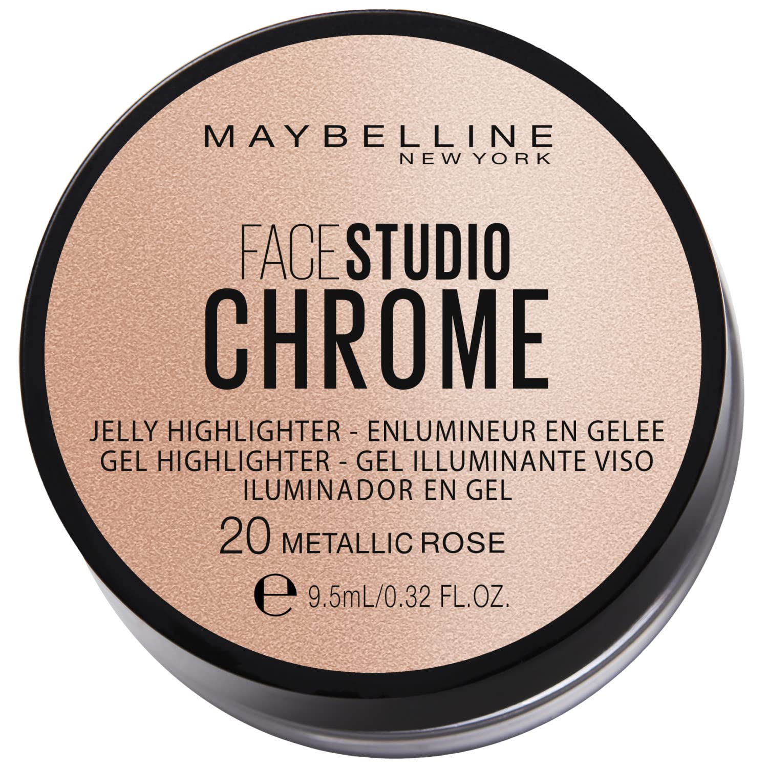 Dewy Highlighter for extra hydration and a perfect glow. Face Studio Chrome Jelly is Maybelline New York's first highlighter. Thanks to its water-based texture, it hydrates the skin while adding radiant highlights. Its pearlescent pigments reflect light and give your skin a beautiful, soft glow. For a perfect, radiant look from head to toe: whether highlighting the face, shoulders, or décolletage – the Maybelline Jelly Highlighter is a must-have for every occasion. The lightweight jelly formula melts into the skin and blends easily. With your fingers, gently tap onto the cheekbones, bridge of the nose, or cupid's bow. Want an even brighter effect? The Jelly Highlighter can be built up layer by layer, from a natural wet look to a dazzling glow. Available in two shades: Metallic Pink and Metallic Bronze. INSTRUCTIONS FOR USE Apply to the cheeks, bridge of the nose, center of the lips and décolletage with your fingers for a natural and glossy look.The creamy texture blends seamlessly with your skin, is easy to apply, and ensures optimal comfort. The pearlescent effects provide a radiant look from head to toe: cheeks, nose, lip center, or décolleté. The water-based formula hydrates your skin without drying it out. Maybelline New York Face Studio Chrome Jelly Highlighter in shade 20 Metallic Rose delivers luminous accents and a flawless glow.Maybelline New York Face Studio Chrome Jelly Surligneur Rose 38 gDESCRIPTION DU PRODUIT DESCRIPTION DU PRODUIT Dewy Highlighter pour une hydratation supplémentaire et un éclat parfait. Face Studio Chrome Jelly est le premier highlighter de Maybelline New York. Grâce à sa texture à base d'eau, elle hydrate la peau tout en lui donnant des accents éclatants. Ses pigments nacrés reflètent la lumière et donnent à votre peau un bel éclat doux. Pour un look parfait et éclatant de la tête aux pieds : que ce soit pour mettre en valeur le visage, les épaules ou le décolleté – le surligneur Maybelline Jelly est un must pour chaque occasion. La formule gelée légère se fond avec la peau et se fond facilement. Avec les doigts, tapotez doucement sur les pommettes, le pont du nez ou le cœur des lèvres. Vous voulez un effet encore plus brillant ? Le surligneur Jelly peut bien construire une couche par couche, d'un effet mouillé naturel à un éclat aveuglant. Disponible en deux nuances : rose métallique et bronze métallique. MODE D'EMPLOI Appliquer sur les joues, le pont du nez, le cœur des lèvres et le décolleté avec les doigts pour un look naturel et brillant.La texture crémeuse se fond avec votre peau, est facile à appliquer et assure un confort optimal. Les effets nacrés assurent un look éclatant de la tête aux pieds : joues, nez, cœur à lèvres ou décolleté. La texture à base d'eau hydrate votre peau sans la dessécher. La rose métallique Maybelline New York Face Studio Chrome Jelly-highlighter dans la n 20 de la rose métallisée assure des accents lumineux et un éclat parfait.
