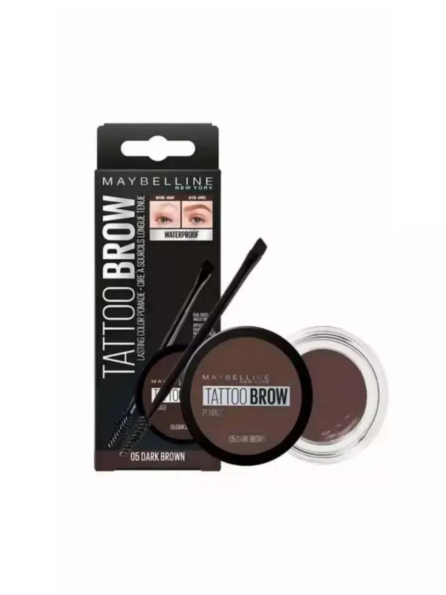 Стойкая Помада для бровей Tattoo Brow матовый обладает кремовой ультрапигментированной водостойкой формулой, с помощью которой легко придать четкую форму и насыщенный цвет бровям. Новый способ сделать свои брови еще совершенней - новинка от Maybеllinе - Броу Помейд. В комплекте вместе с помадой для бровей идет удобная двусторонняя кисть: с одной стороны скошенная кисть из искусственного ворса, с другой – щёточка для расчесывания волосков и легкой растушевки. Нанесение еще никогда не было таким удобным! Преимущества: Экономичное использование, благодаря формату баночки. Кремовая пигментированная и водостойкая формула. Матовый эффект Стойкость 24 часа. Удобная двусторонняя кисть в комплекте. Способ применения: Используй скошенную кисть для придания бровям формы. Сначала очерти форму, а потом наполни ее цветом. Наноси пока не достигнешь желаемой интенсивности цвета. Расчеши брови щеточкой с другой кисти для более естественного эффекта.