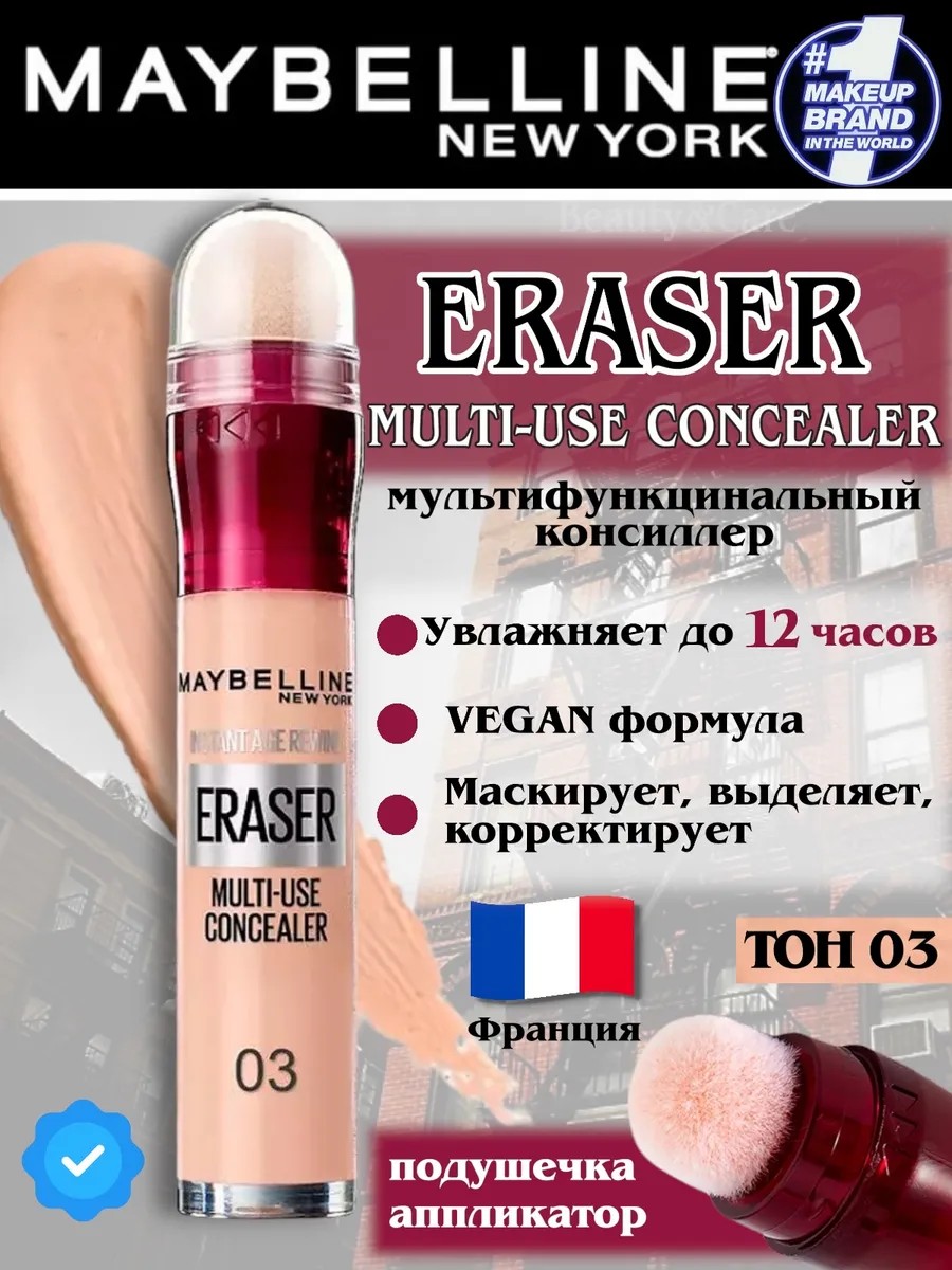 | Полное наименование товара | Maybelline New York Консилер для лица и глаз INSTANT ERASER, 03 Натурально-бежевый, мультифункциональный оригинал, 6.8 мл |