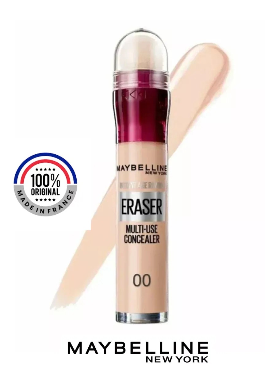 Мультифункциональный консилер "Instant Eraser" Maybelline Мейбиллин маскирует темные круги под глазами, скрывает несовершенства, выравнивает тон и сглаживает неровности текстуры кожи. Кожа выглядит безупречной, мгновенно более упругой и подтянутой! Эффективная формула с экстрактом ягод годжи и галоксилом ухаживает за кожей вокруг глаз и преображает ее.Консилер с запатентованным аппликатором-подушечкой обеспечивает легкое и равномерное нанесение. Текстура консилера равномерно растушевывается, не полосит при нанесении.Инстант анти-ейдж консиллер - Мгновенно маскирует недостатки кожи одним движением благодаря супер-удобной форме,лёгкая невесомая текстура. Способ использования и нанесения: Нанесите лёгкую текстуру консиллера с помощью удобного спонжа-аппликатора на тёмные участки или недостатки на коже лица. Растушуйте с помощью спонжа-аппликатора. Преимущества:1. Легкая невесомая текстура. 2. Лёгкое нанесения и расстушовка благодаря аппликатору-спонжу 3.Незаметный на лице, благодаря своей невесомой текстуре идеальный для маскировки недостатков.