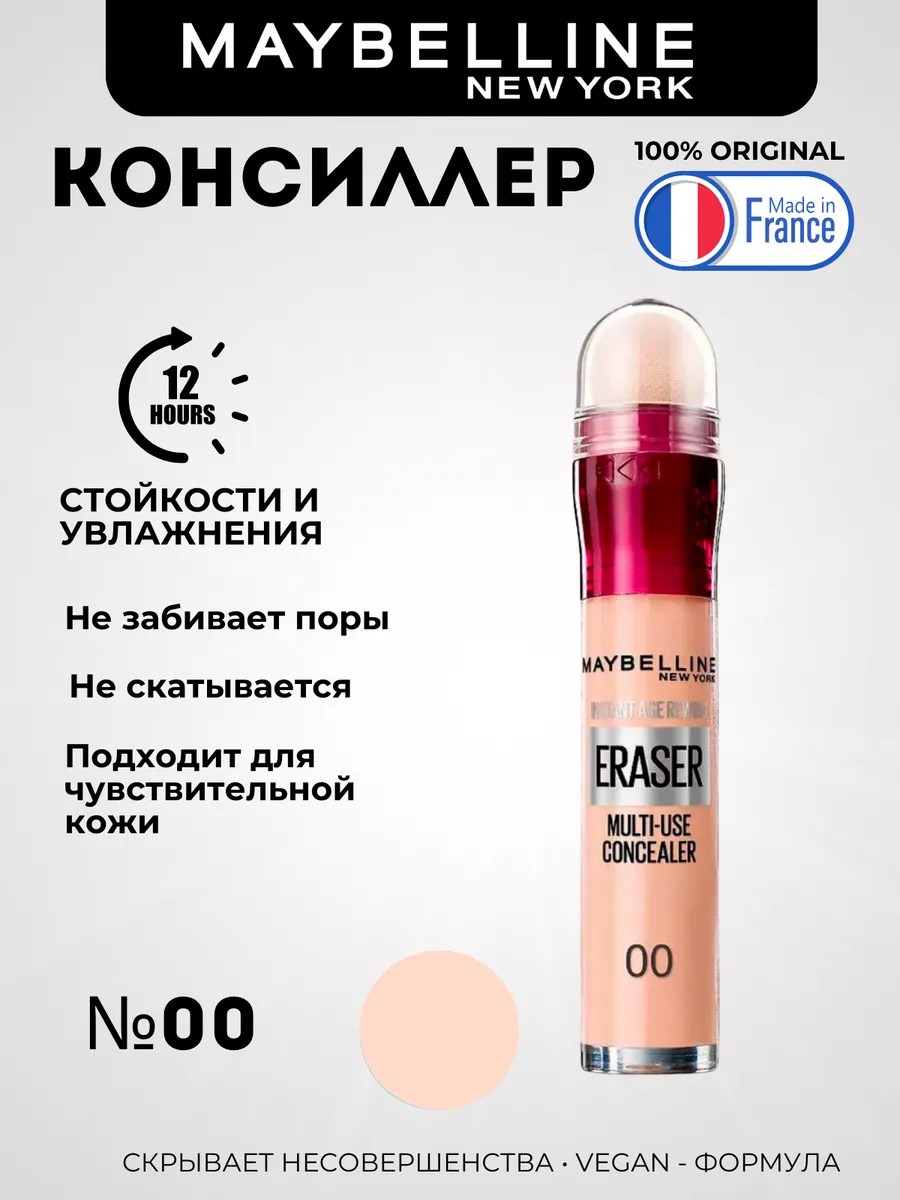 Консилер Instant Eraser от Maybelline New York - это многофункциональное средство для коррекции несовершенств кожи, которое эффективно справляется с маскировкой темных кругов и других проблемных зон.
