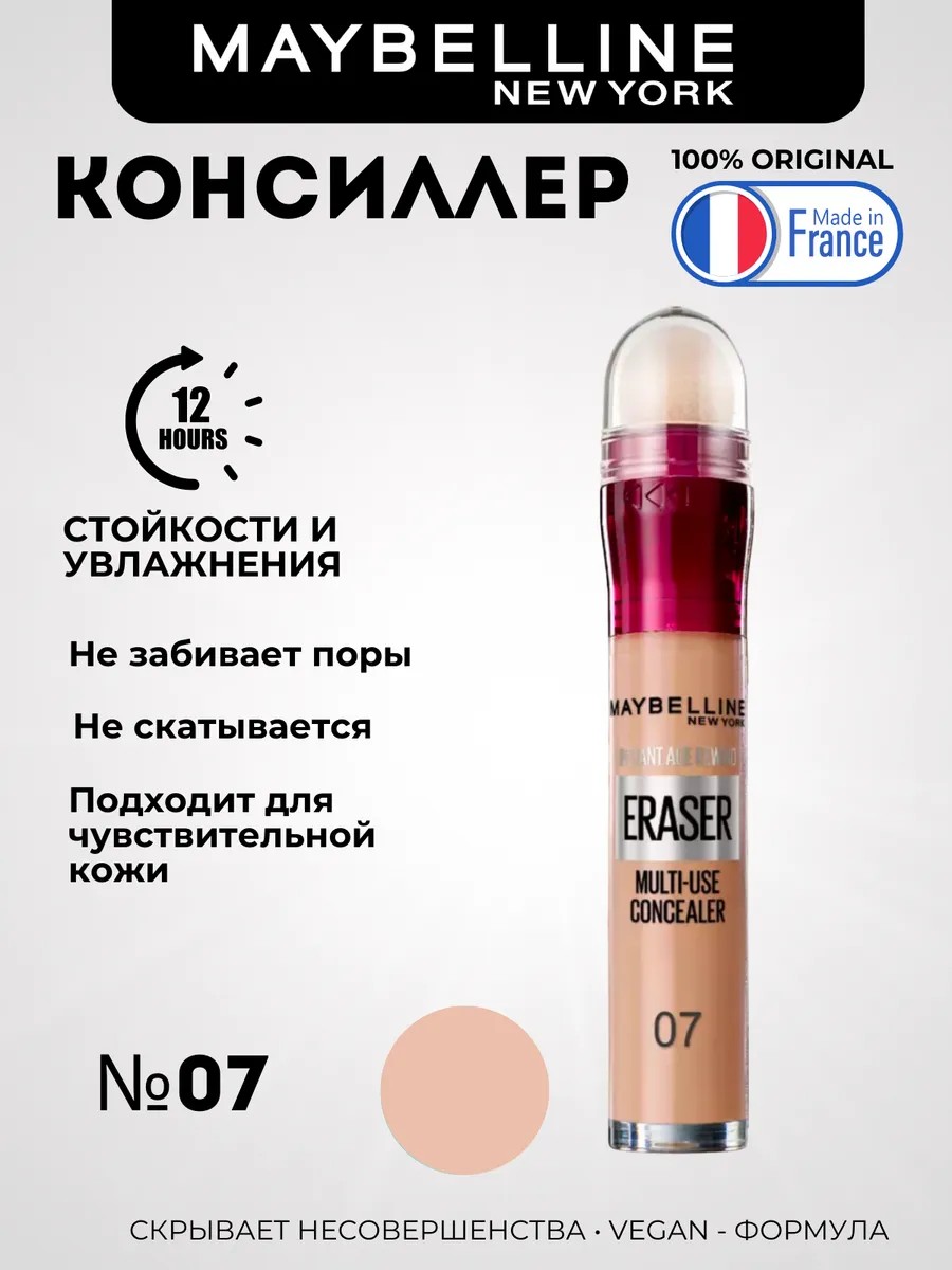 Консилер Instant Eraser от Maybelline New York - это многофункциональное средство для коррекции несовершенств кожи, которое эффективно справляется с маскировкой темных кругов и других проблемных зон.