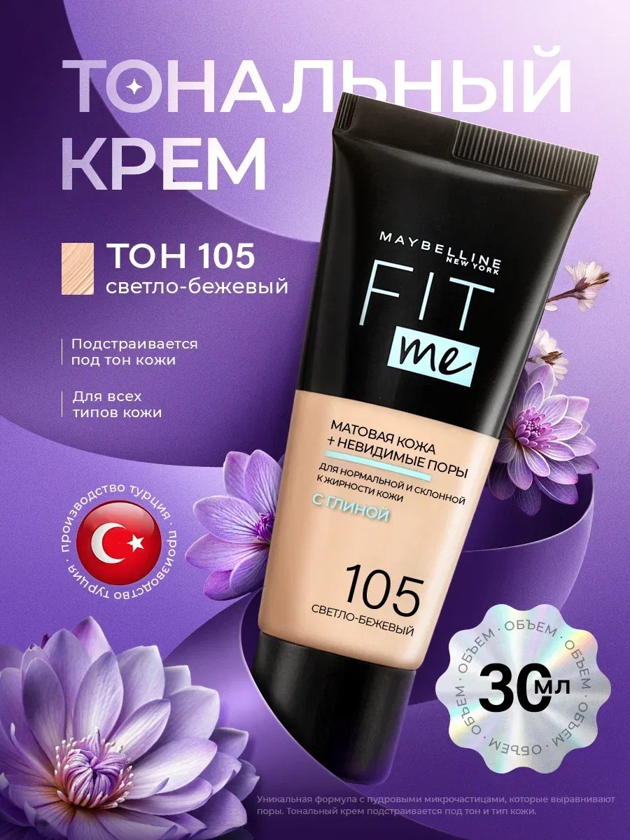 Многим девушкам, а также девочкам подросткам довольно тяжело выбрать подходящую косметику, которая бы соответствовала их ожиданиям, но при этом не сушило эпителий и не ощущалось на лице. Бренд Maybelline предлагает познакомиться с кремом Fit Ме, подстраиваемый под особенности кожи и дарящий ей безупречный вид. Широкая палитра оттенков позволяет подобрать уместный тон, чтобы создать собственное покрытие. Обладательницы жирной кожи сталкиваются с такой проблемой, что тональная основа держится маленькое количество времени, на лице появляется блеск. Но, специфика представляемого средства заключаются в том, что применяя его, вы можете забыть о подобных неприятностях, ведь наш продукт отличается высокой стойкостью, поглощает жирный блеск, оставляя матовый эффект!