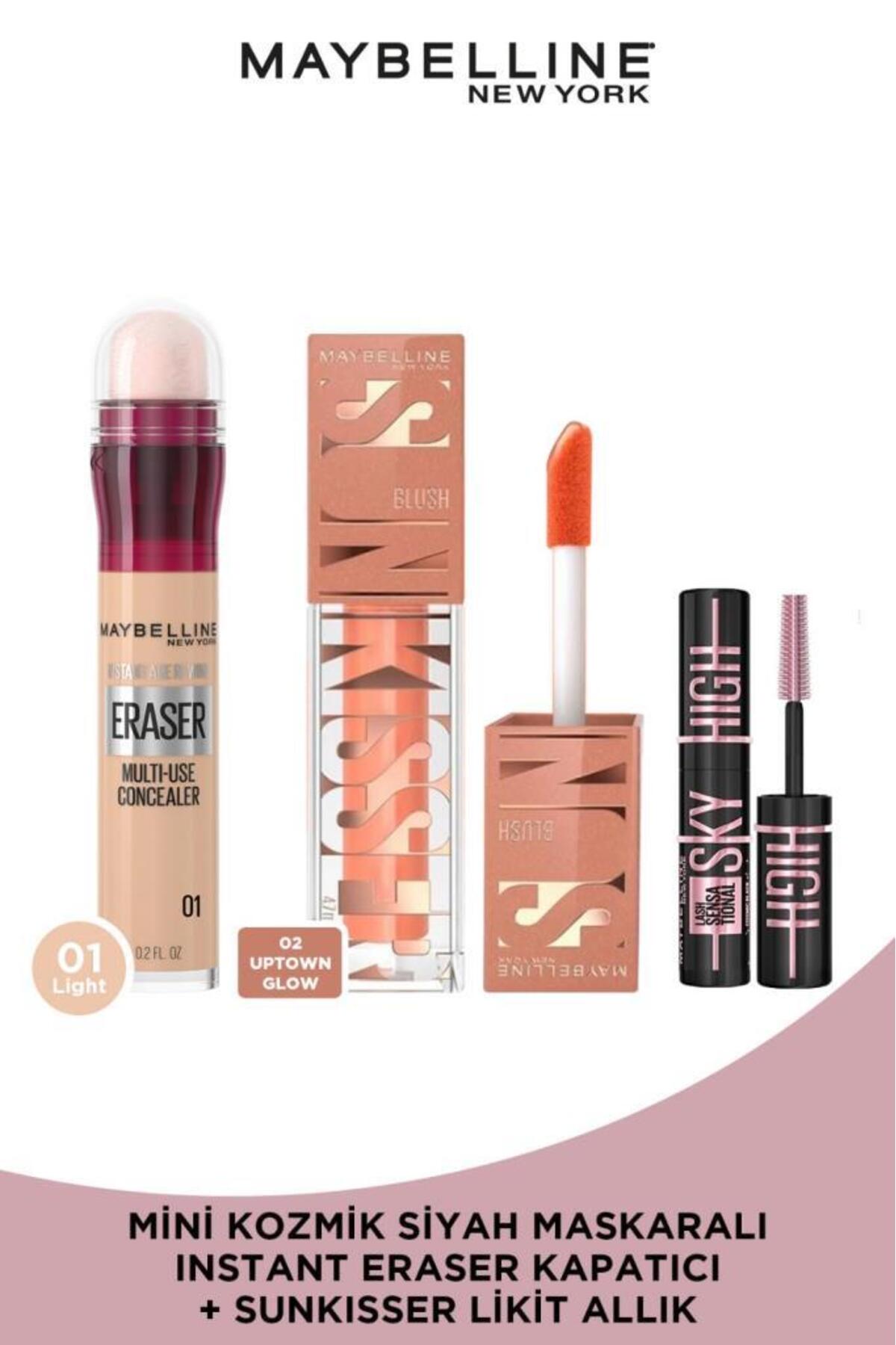 Maybelline New York Instant Anti Age Eraser Concealer 01 & Sunkisser Shimmering Liquid Blush 02 Uptown Glow & Mini Mascara