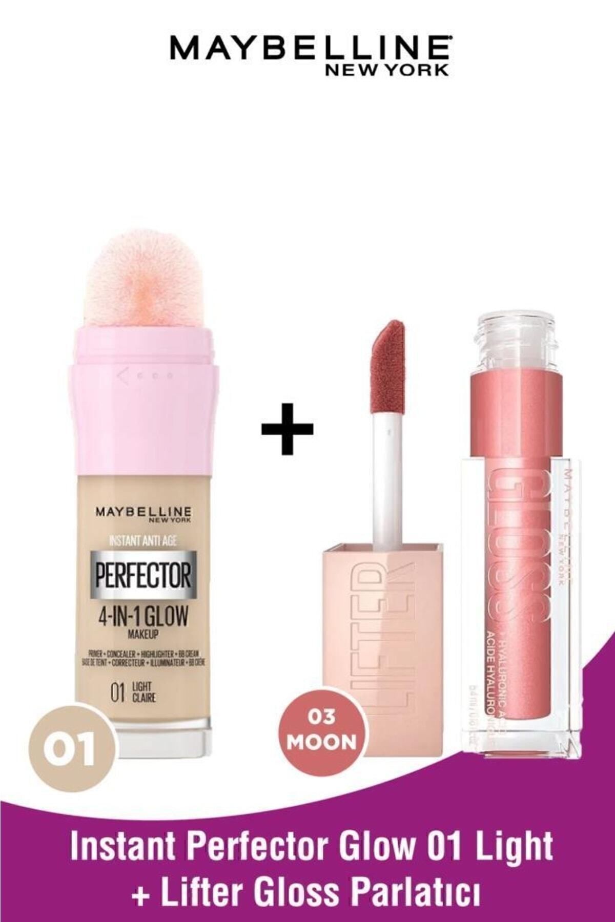 Maybelline New York Instant Perfector Glow 4 Effects in 1 Foundation - 01 Light & Lifter Gloss Lip Gloss 003 Moon