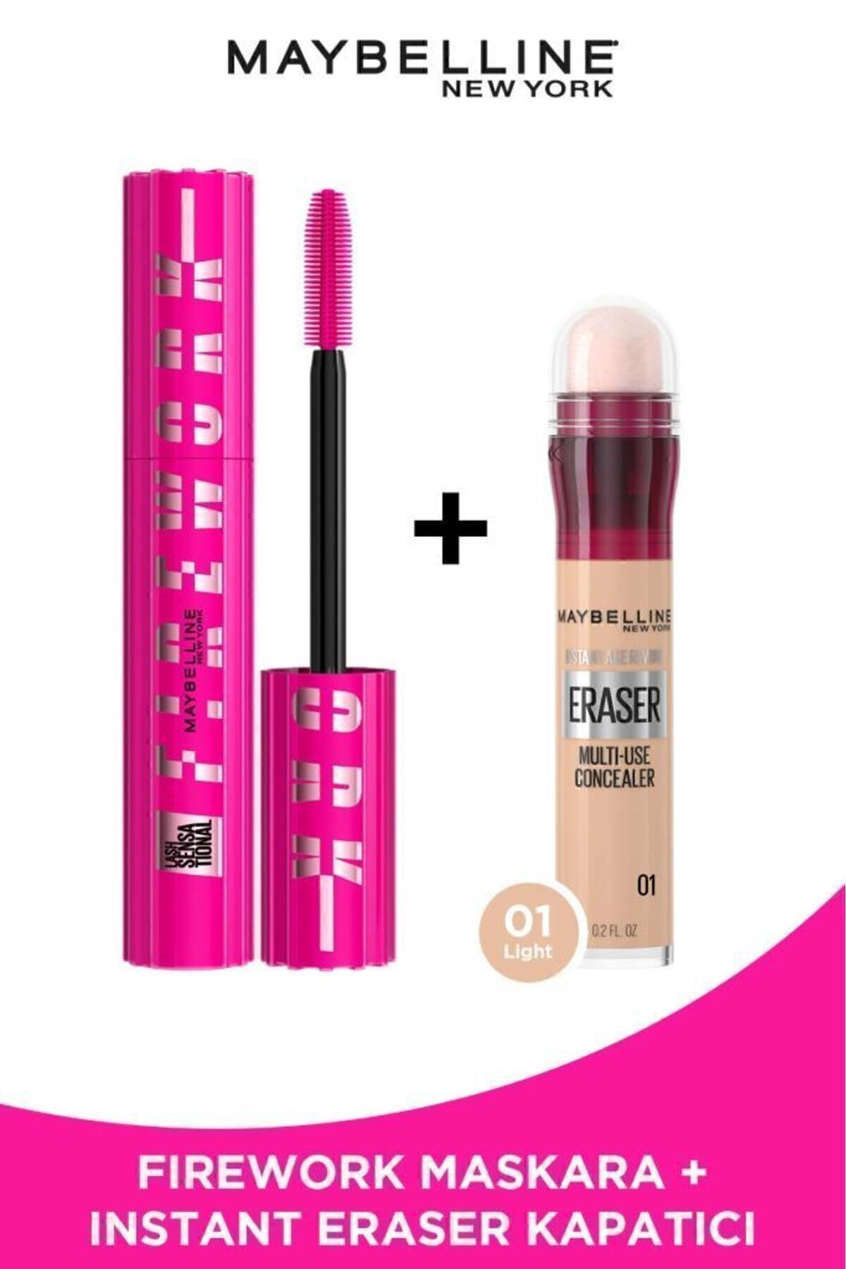 Maybelline New York Lash Sensational Firework Mascara & Instant Anti Age Eraser Concealer - 01 Light Makeup Set