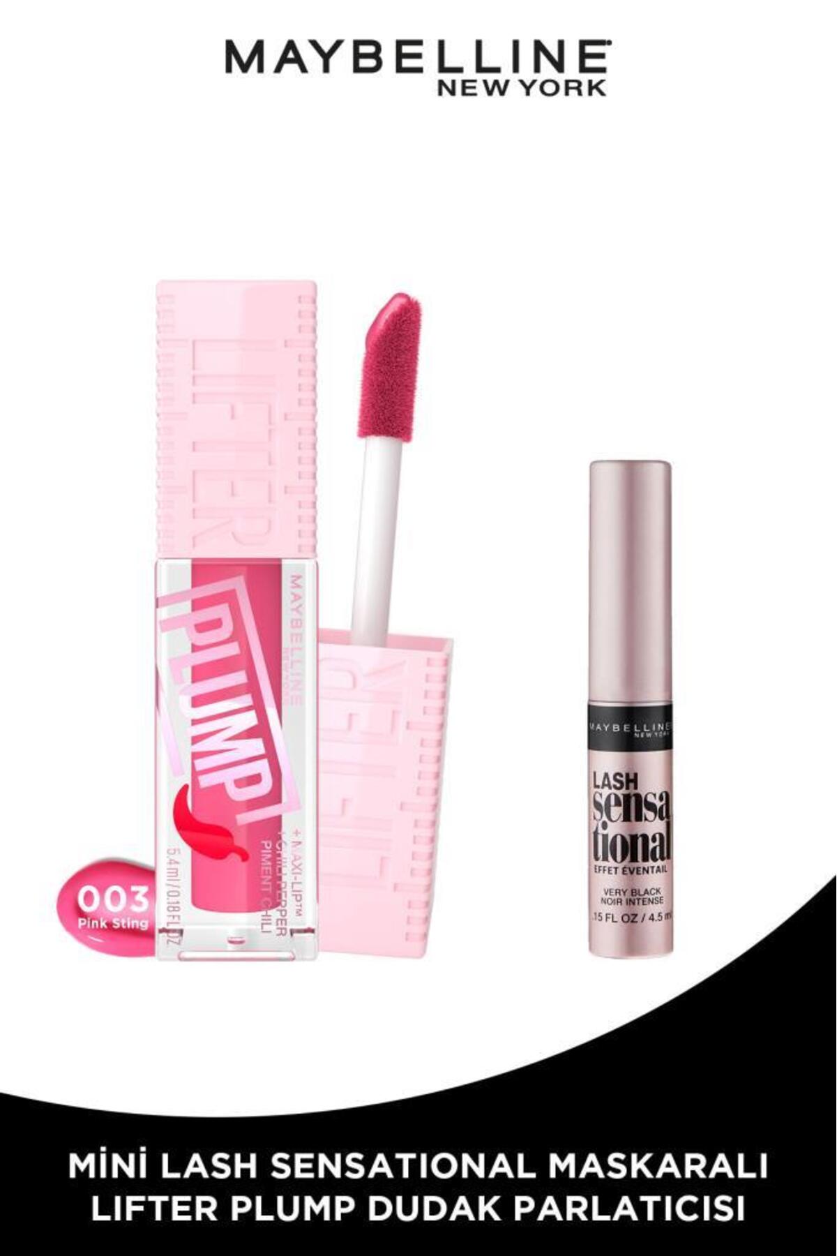 Maybelline New York Lifter Plump Lip Gloss 003 Pink Sting Pink & Mini Lash Mascara Makeup Set