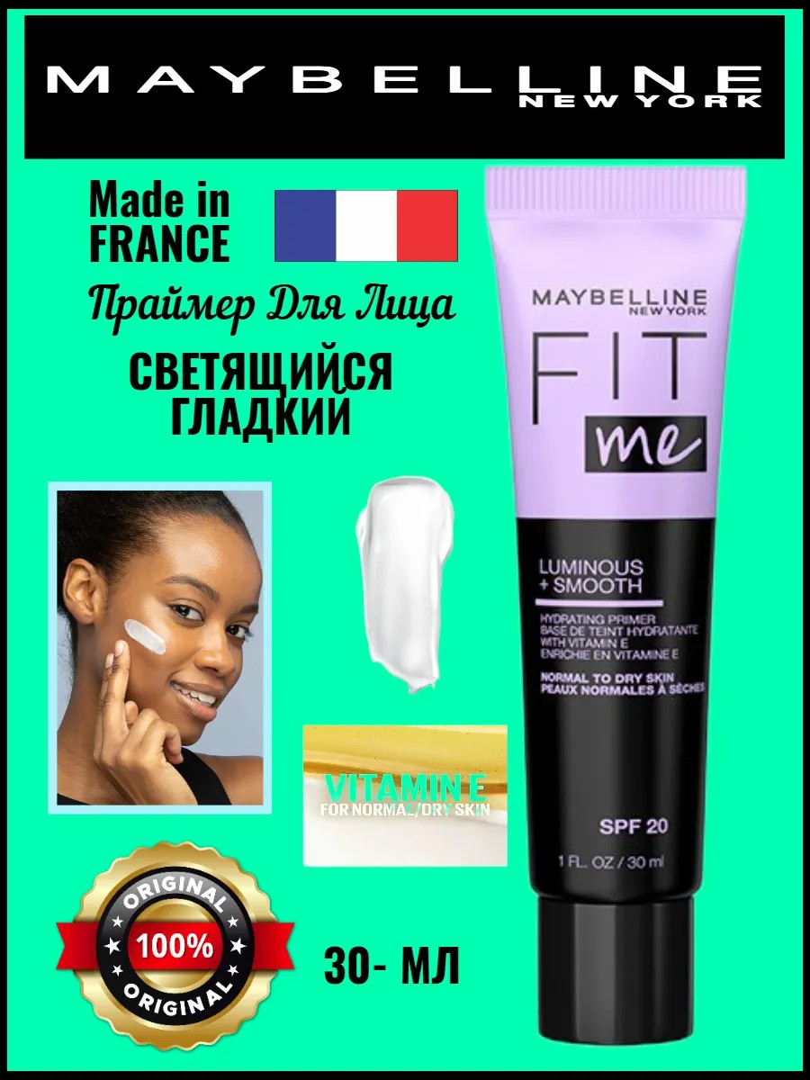 Оцените сияние и свежесть вашего лица с праймером для лица Fit Me! Luminous + Smooth от Maybelline — идеальной базой под макияж для вашей кожи. Этот праймер создан для тех, кто хочет добиться естественного сияния и безупречного ровного тона лица. Праймер для лица помогает сократить видимость пор и тонких линий, сглаживая текстуру кожи и делая её подготовленной к нанесению макияжа. Благодаря легкой, дышащей формуле, основа под макияж ощущается невесомой и комфортной на протяжении всего дня, не создавая эффекта маски.