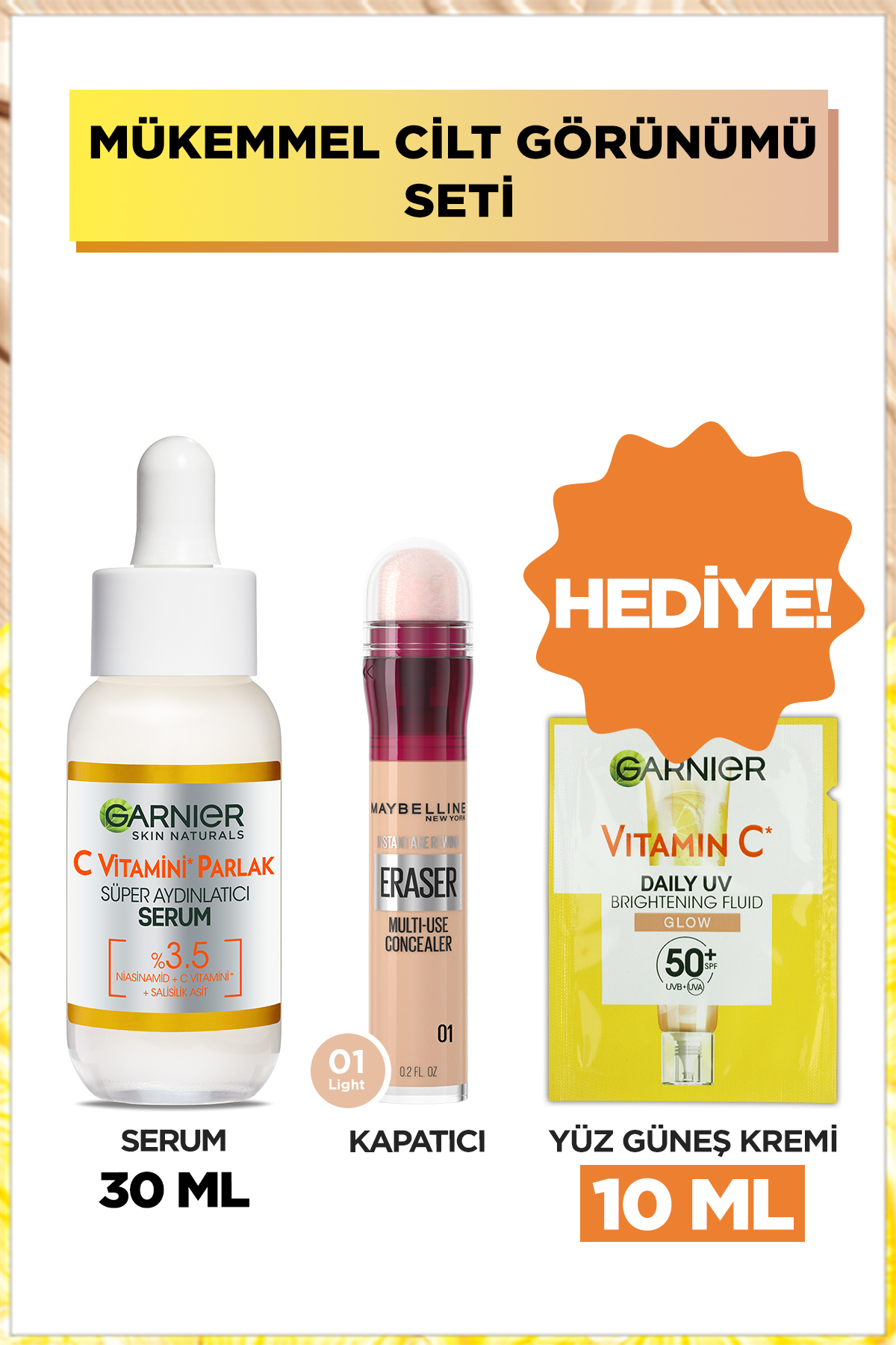 Maybelline New York Maybelline Instant Anti Age Eraser Concealer 01 & Garnier Vitamin C Bright Super Brightening Serum