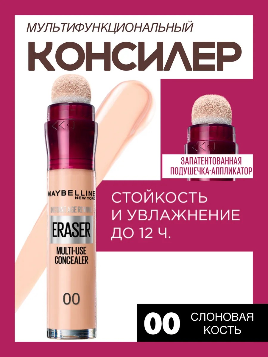Предлагаем оригинальный Консилер Maybelline Instant Anti-Age Eraser Eye оттенка 00 Слоновая кость!