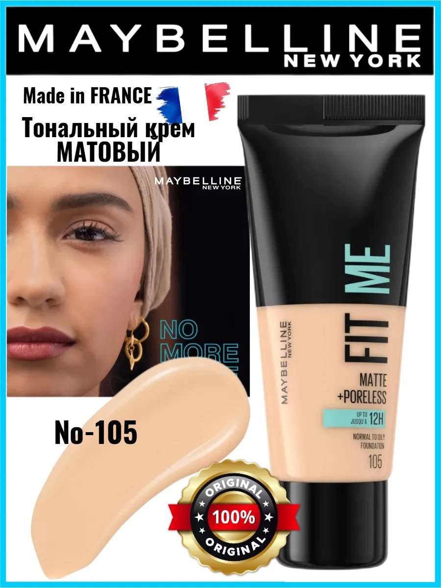 Тональный крем Maybelline Fit Me Foundation 105 светло бежевый безупречное покрытие на весь день и со временем улучшает состояние кожи, создавая естественный матовый финиш, который держится весь день. Этот тональный крем с уникальной формулой скрывает недостатки и придает коже свежий вид, без тяжести и сухости.