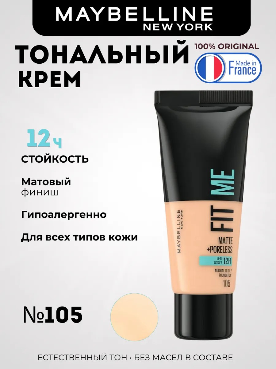 Maybelline New york Тональный крем для лица Фит Ми №105 светло-бежевый