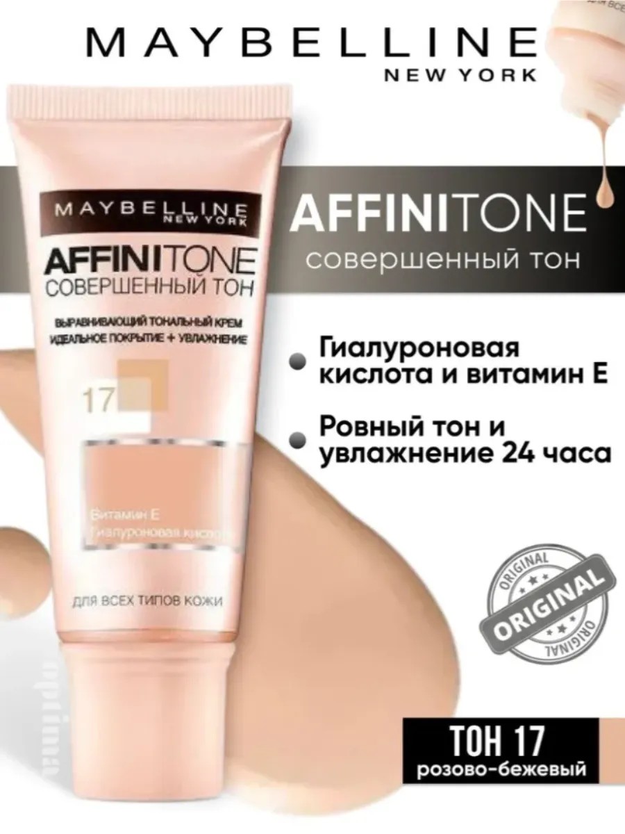 Affinitone Совершенный Тон теперь c гиалуроновой кислотой! Годен до : 03. 2026 Совершенный тон и уход за кожей 24 часа*. Обогащенный минеральными пигментами, тональный крем Affinitone Совершенный Тон подстраивается под тон и текстуру кожи, создавая безупречно ровный тон, без эффекта маски. Ухаживающая формула c гиалуроновой кислотой, витамином Е и аргановым маслом интенсивно увлажняет кожу на весь день. Скрывает несовершенства, тусклость и видимость пор. Заметно улучшает тон и текстуру кожи. Кожа выглядит заметно более свежей, ухоженной целый день. Подходит для всех типов кожи, даже чувствительной. Некомедогенно (не забивает поры).*Инструментальный тест, 24 респондента.СПОСОБ ПРИМЕНЕНИЯ:Выбери свой оттенок тонального крема Affinitone. Наноси тональный крем кистью, спонжем или подушечками пальцев по массажным линиям от центра лица к периферии. Легкая текстура тонального крема равномерно наносится и распределяется.