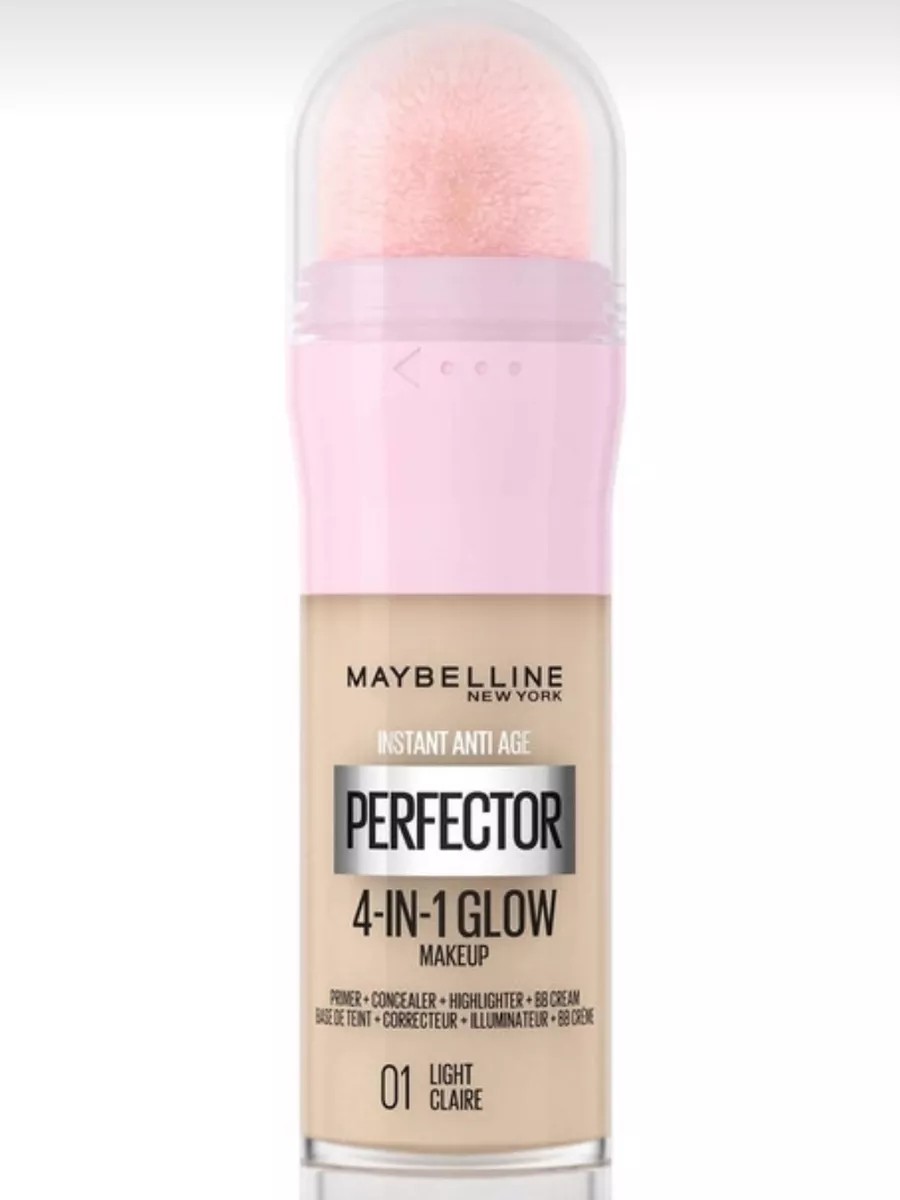 The Anti-Age Perfector 4-in-1 Glow Makeup Instant Makeup is Maybelline's first 4-in-1 makeup that creates the perfect radiant look that evens, conceals, highlights, and evens skin tone with sheer coverage. Self-adjusting shades that blend seamlessly with your skin tone.