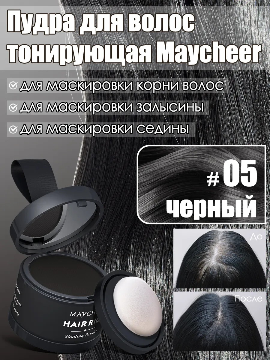 Maycheer Оттеночная пудра тени для волос и бровей, камуфляж седины и выпадения, 4г