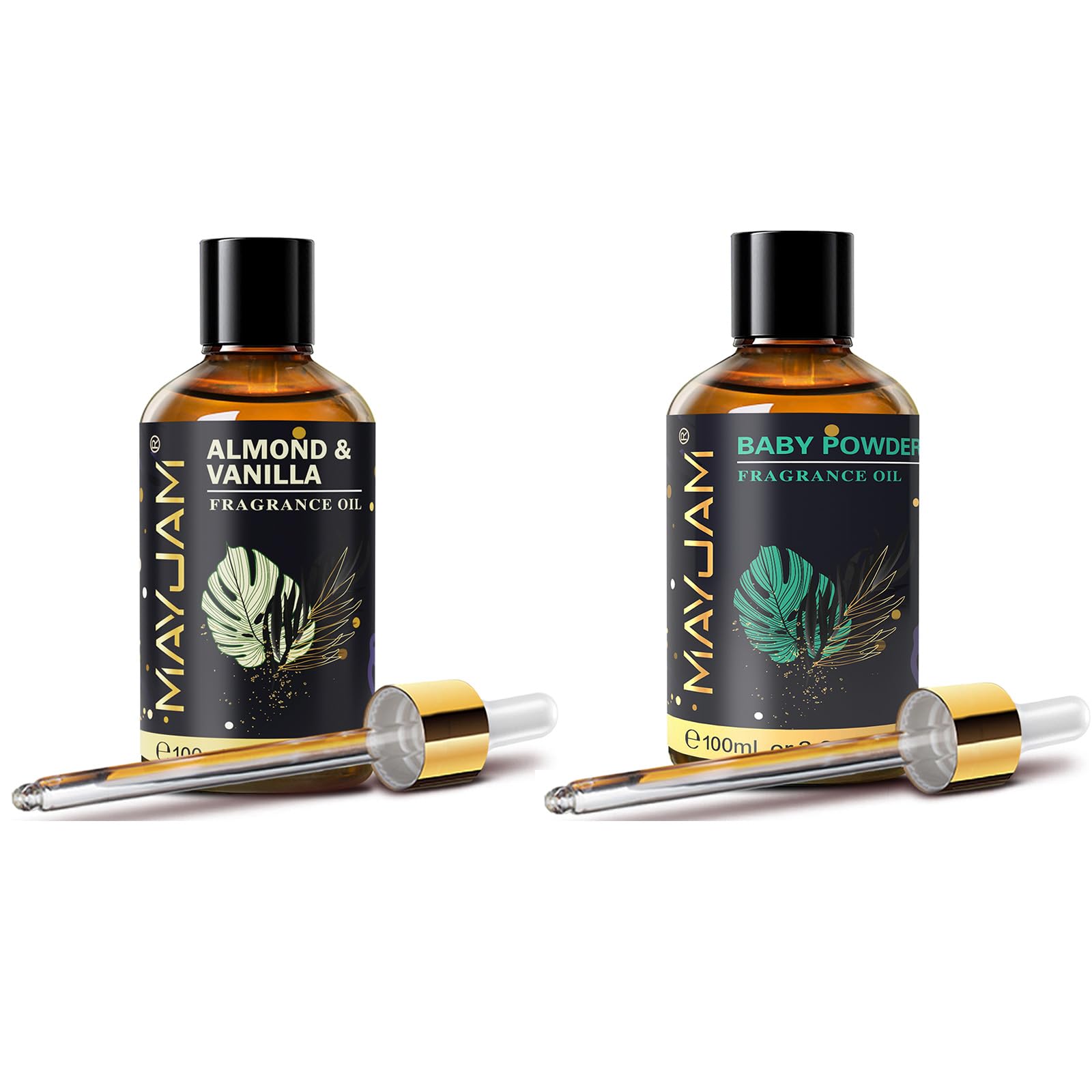 Package Included: 1 X MAYJAM 100ML Almond Vanilla Fragrance Oil 1 X MAYJAM 100ML Baby Powder Fragrance Oil