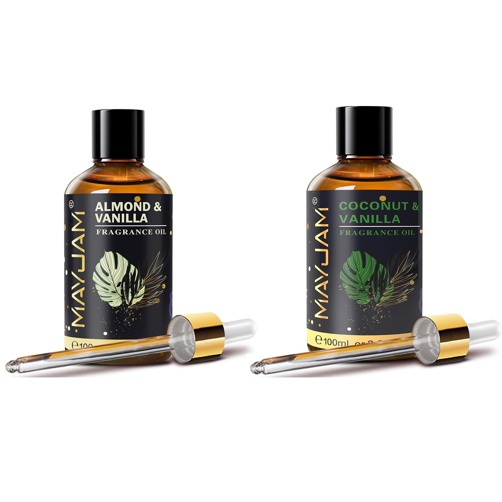 Package Included: 1 X MAYJAM 100ML Almond Vanilla Fragrance Oil 1 X MAYJAM 100ML Coconut Vanilla Fragrance Oil