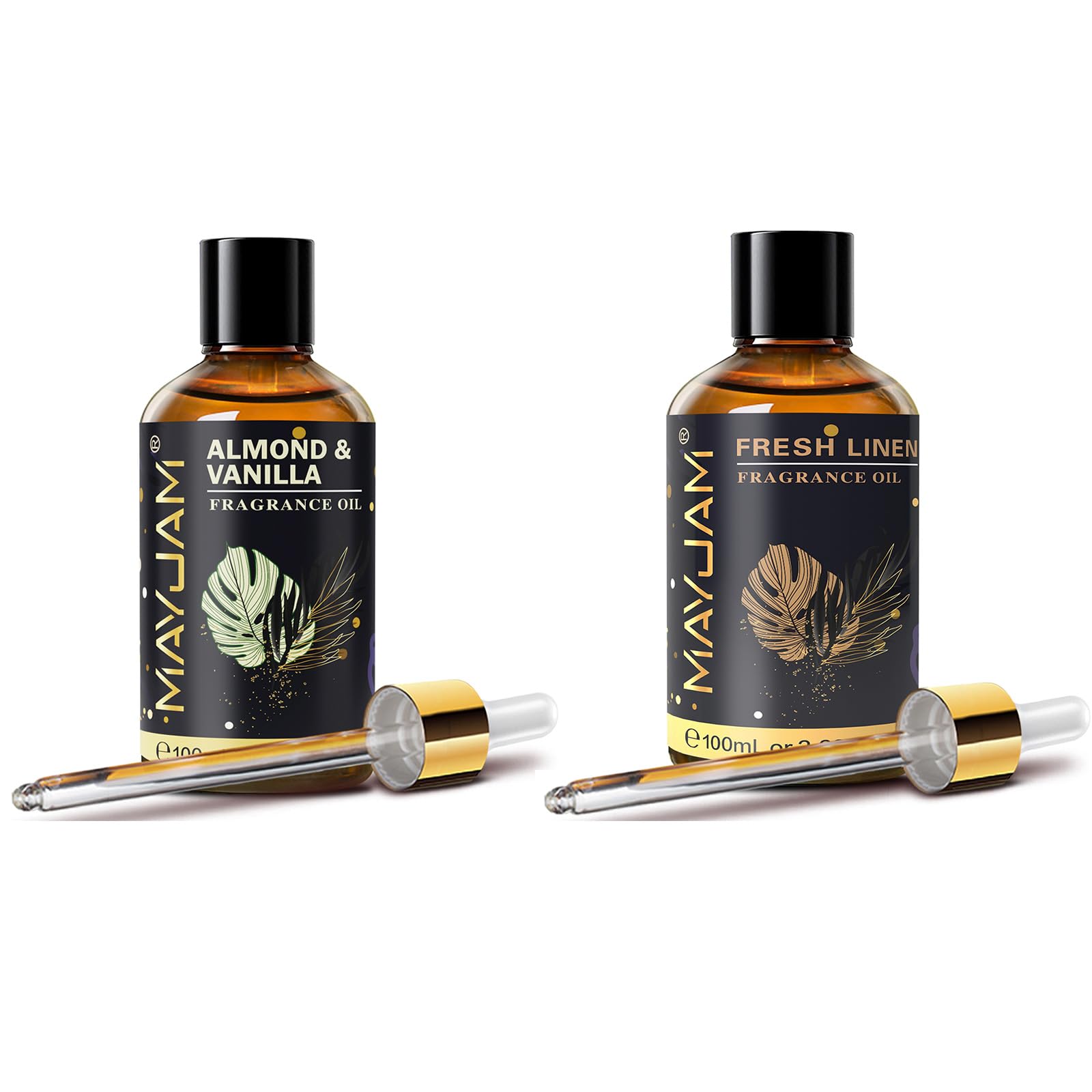 Package Included: 1 X MAYJAM 100ML Almond Vanilla Fragrance Oil 1 X MAYJAM 100ML Fresh Linen Fragrance Oil