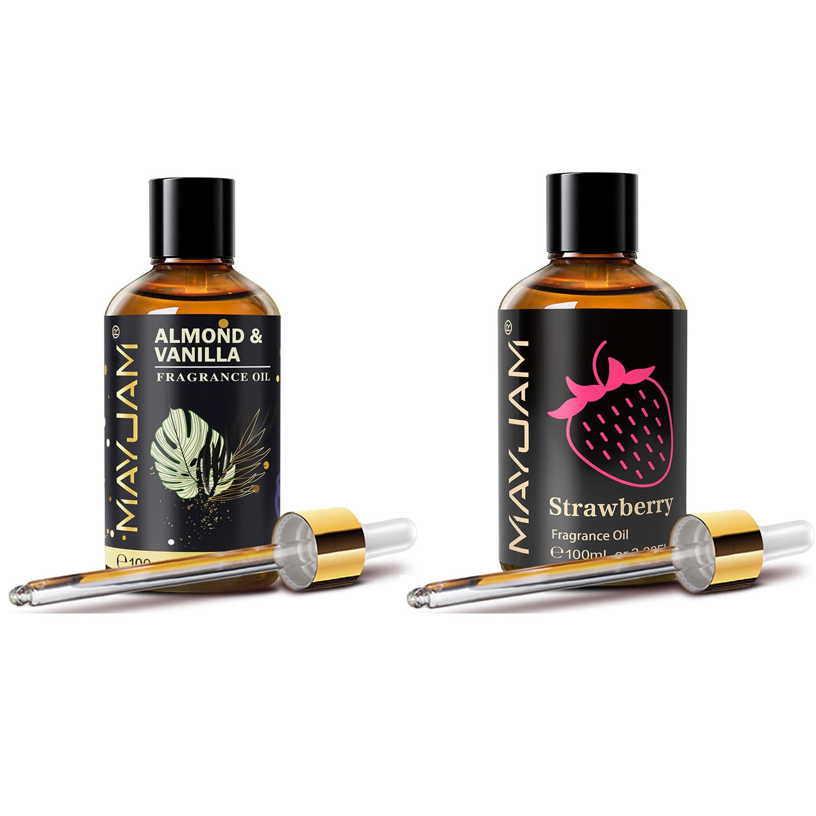 Package Included: 1 X MAYJAM 100ML Almond Vanilla Fragrance Oil 1 X MAYJAM 100ML Strawberry Fragrance Oil