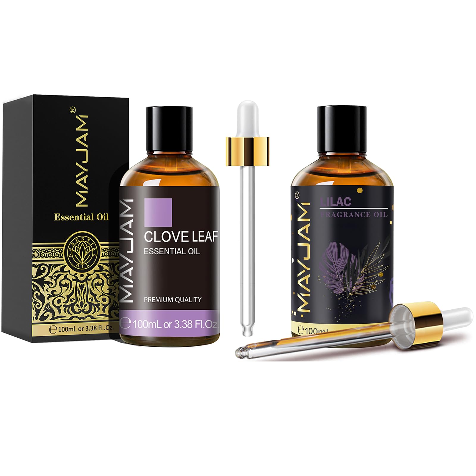 Package Included: 1 X MAYJAM 100ML Clove Essential Oil 1 X MAYJAM 100ML Lilac Fragrance Oil